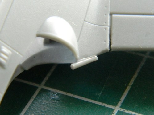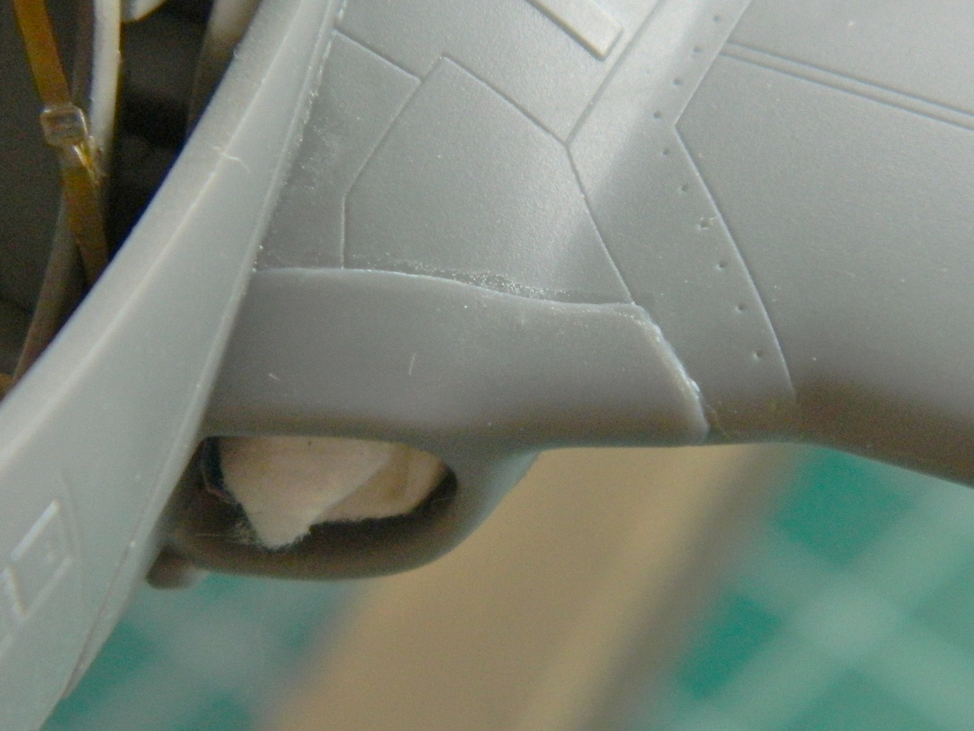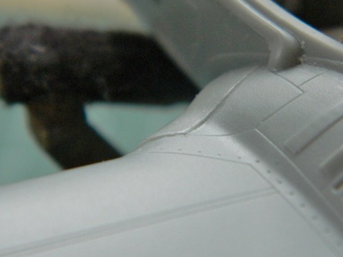Since I need to rescribe the lines of the intakes, I’m letting the work sit overnight for the glue to fully cure before I go at these areas with scribers.
