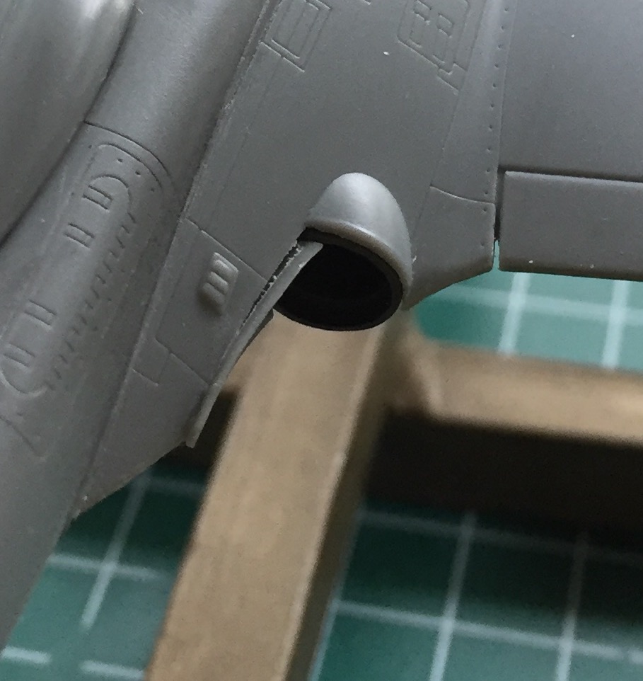 I started by fixing the exhaust deflector on the right side. The left side fit perfectly. It wasn’t until I’d glued the right side in that I realized that it didn’t quite fit (see the Glossary for “brain fade”), so that got fixed: