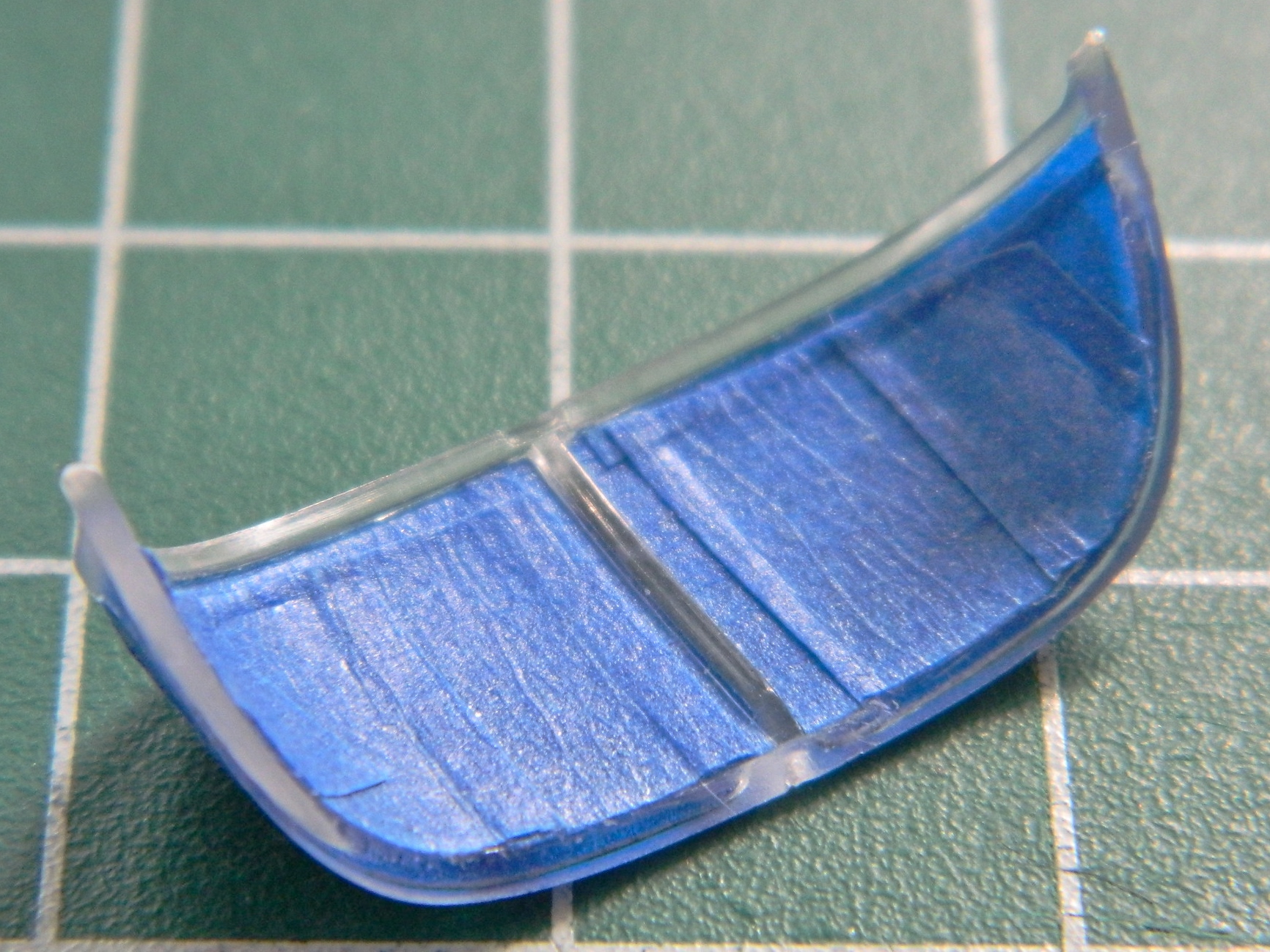 The top canopy seen above was also masked inside and out. Once the masks were laid down, the interior color was painted on, inside and out. Why outside? Some of the external framing is larger than the internal framing. If, as would seem logical, I’d painted the outside color first, where the framing extends past the inside framing the outside color would show…and I don’t want that. So the inside color will show inside, and the outside color will show outside:
