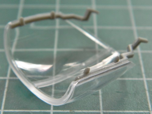I added the magnetic compass to the top center inside the windscreen, painted it black, and glued the windscreen into position: