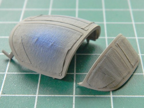 One of my line scribers actually cuts plastic away leaving a slot and that’s what I used to cut slots the PE parts will be glued into: