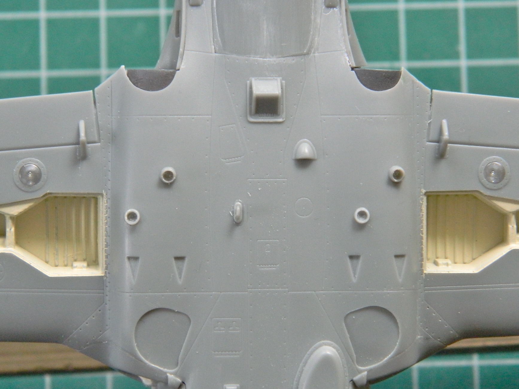 The main landing gear struts have locking arms that keep the gear extended. The recessed rectangular area should be open as when the gear retracts, the brace leg to the left folds into that area, meaning that has to be cut out: