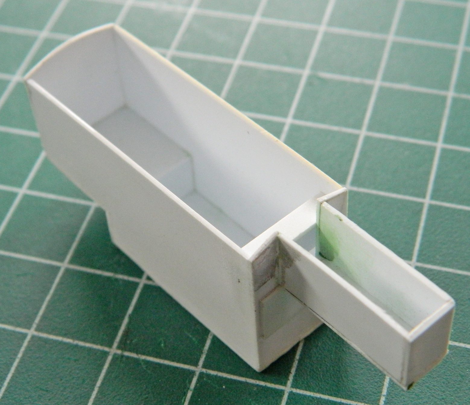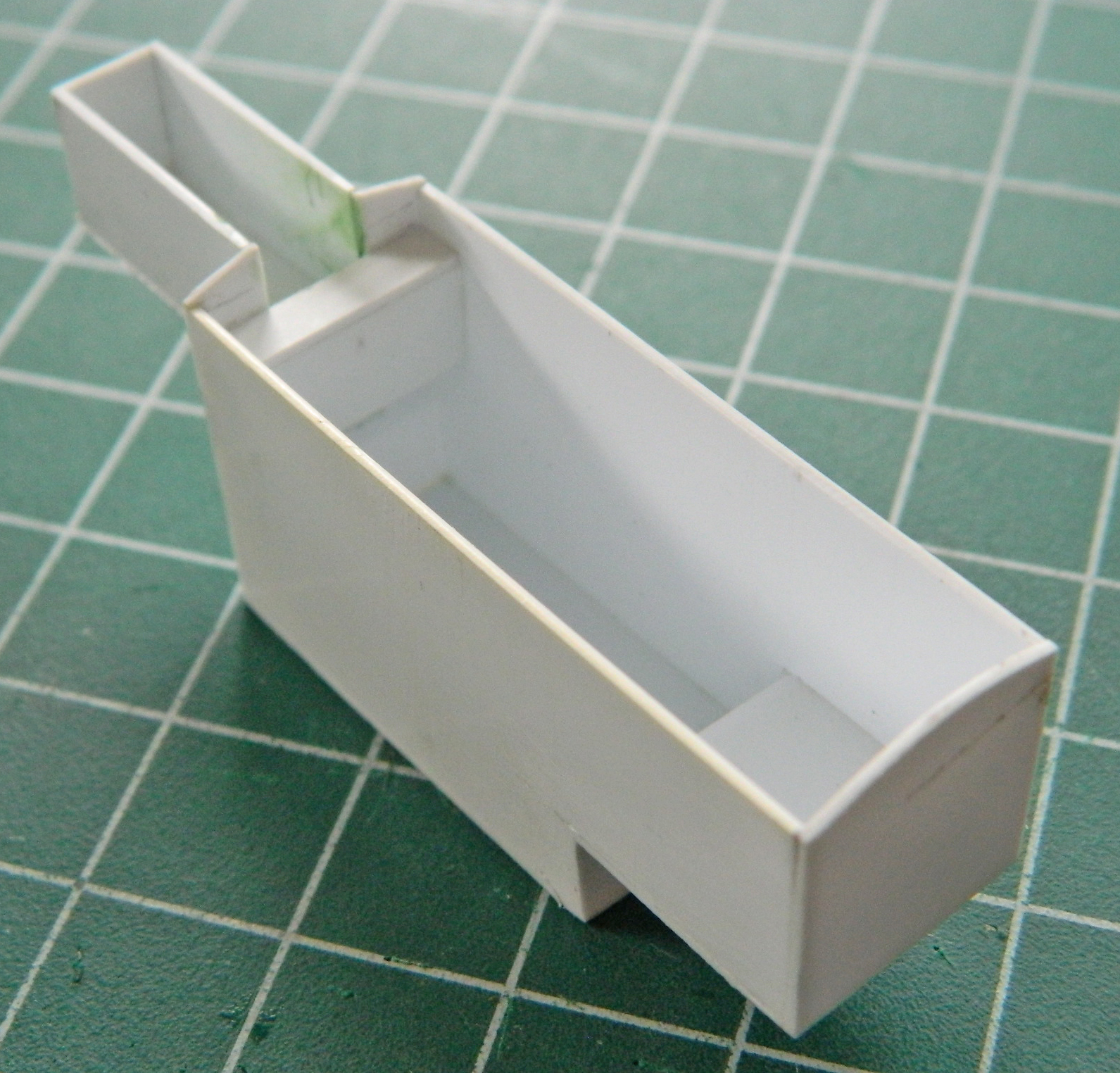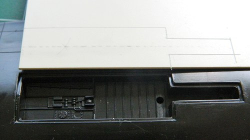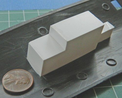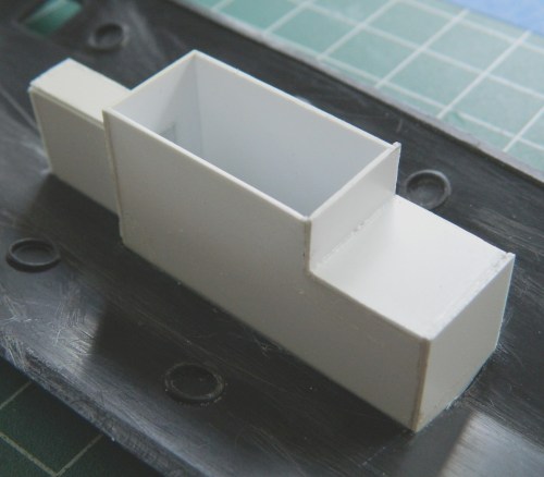 That got tossed in the scrap bin. Before I started cutting plastic (.030″ [.762mm]) again, I decided to create a socket for the new box to settle into. This is going to be a big model with some heft and I wanted to increase the surface area the glue would bond with: