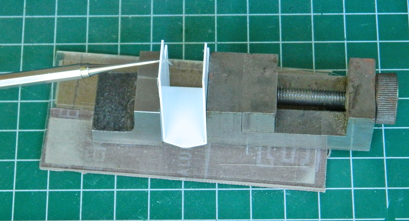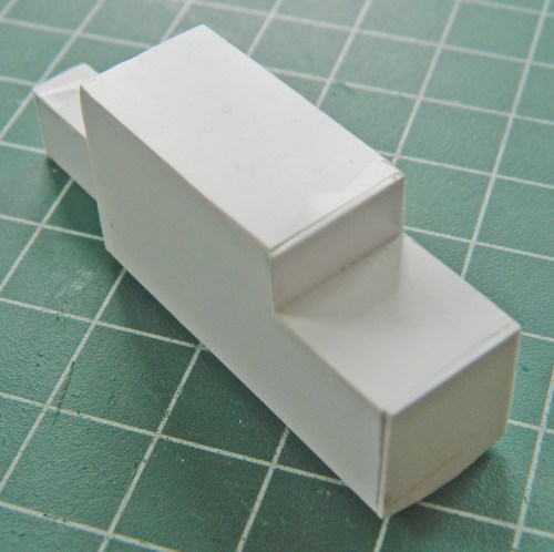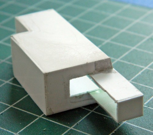Then I used the opening to create the shape of the vertical bulkhead in the front, cut the side panels, and glued them together: