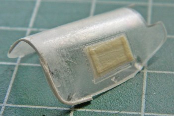Even though once these parts are mounted in place and very unlikely to ever be stressed, “very unlikely” doesn’t even rhyme with “won’t ever.” I mean, it’s only .005″ (.127mm) copper! So I took a piece of .010″ (.254mm) styrene scrap and added additional support at the bottom of the cylinder: