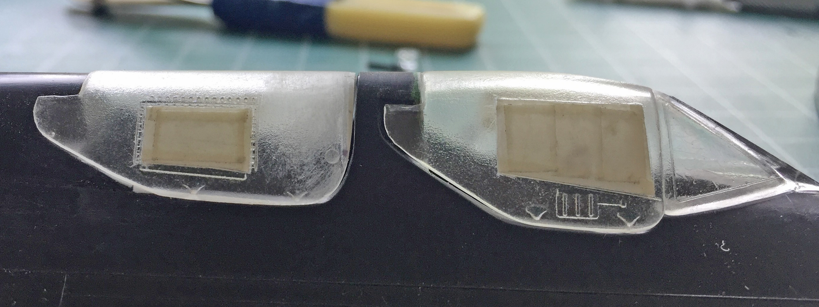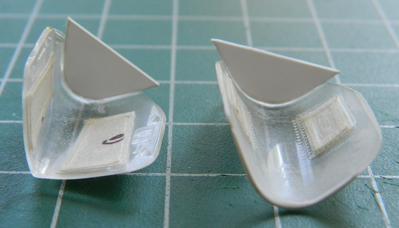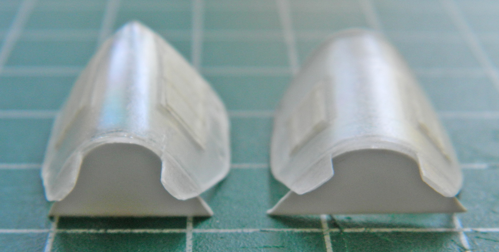 There are pronounced structures inside the canopies that the kit’s parts don’t have. They’re necessary to have them so that started with a job that I REALLY can’t stand…putting a bulkhead inside a curve. Tedious. Tedious. Tedious. But they’re not going to add themselves, so: