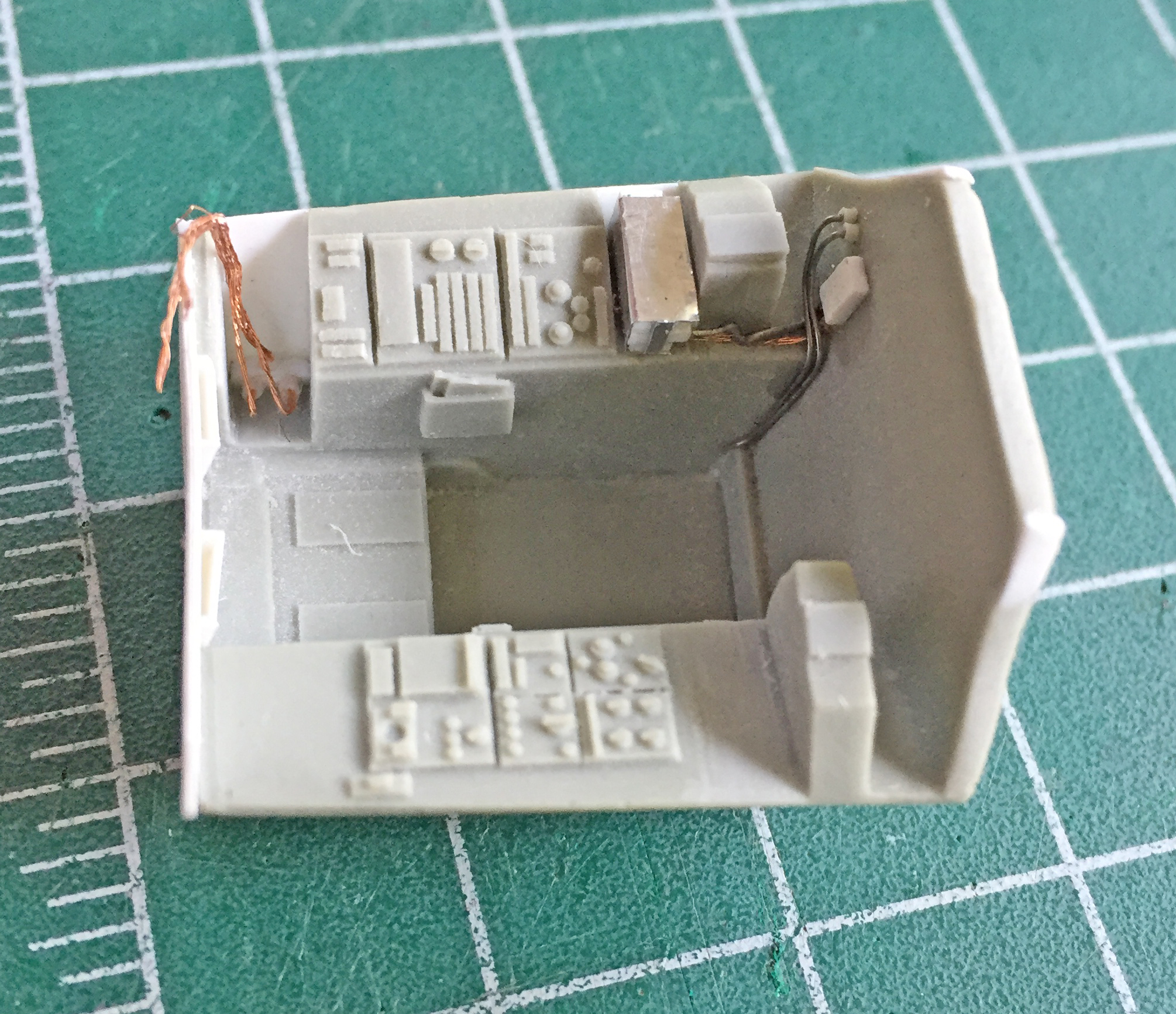 The completed bits get installed and wiring added. For the small part at the lower left I used 40awg wire to create the harness…then cut down the other pedestal to have a place to put more Mysterious Bits: