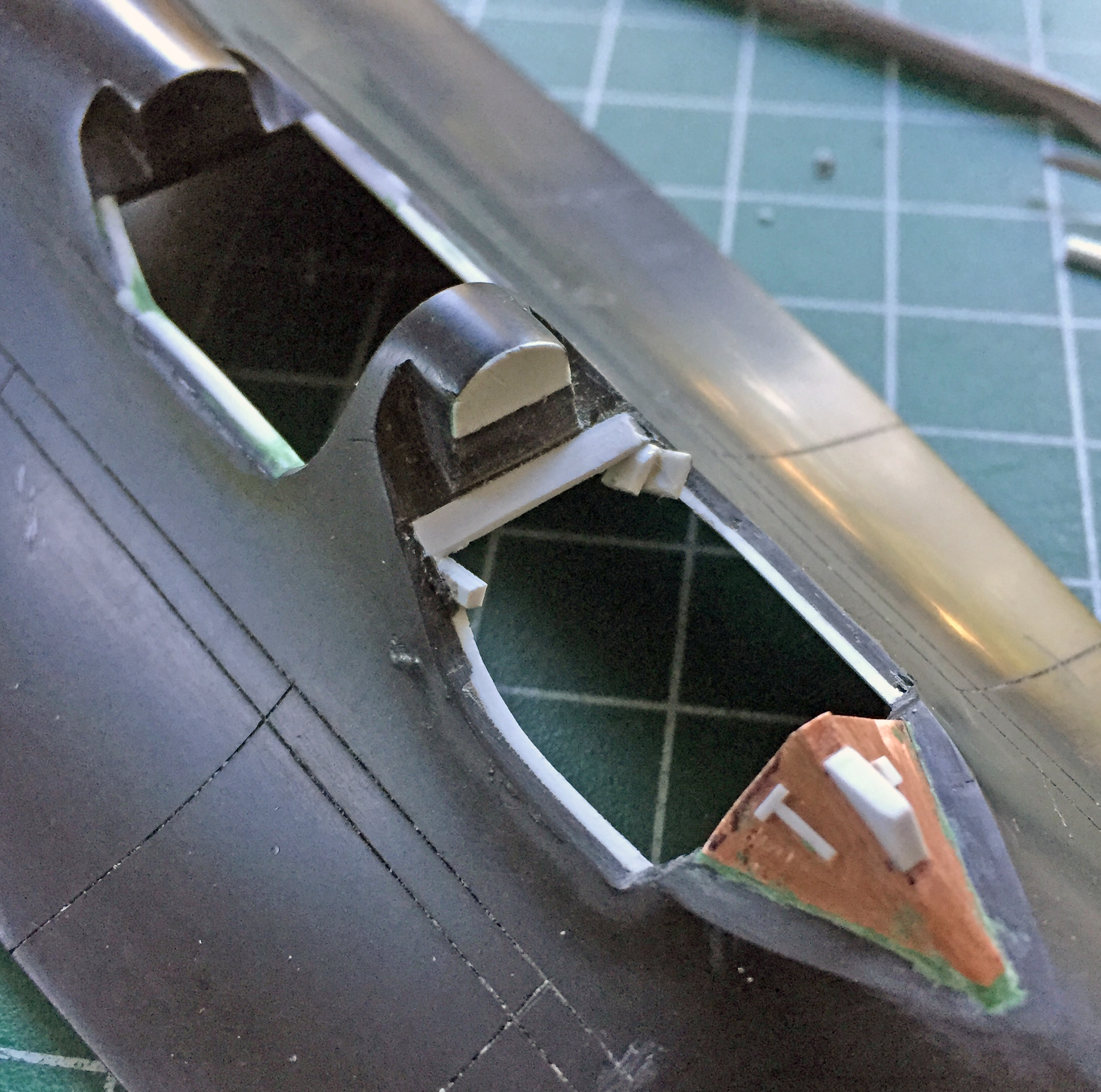 Dry-fitting the cockpit tub showed me that I had to add more styrene to replace what I’d already removed. The result isn’t 100% accurate due to the a-bit-too-short overall length of the resin tub but it’s much better than not doing so: