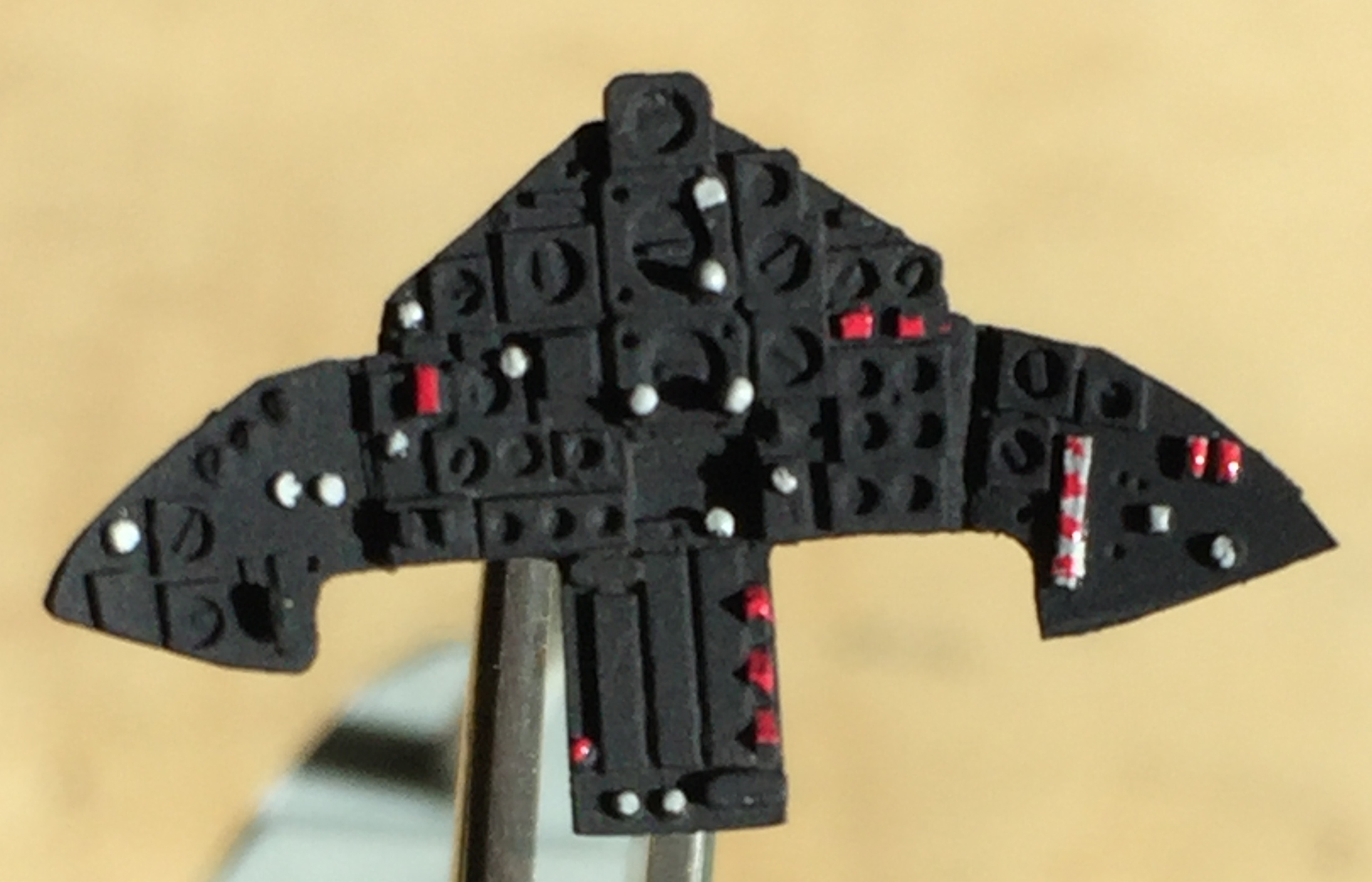 I like pre-shading things. It helps to make the view deeper and more realistic (I could go on about that; if you’ve any interest, drop me a note and I will). Pre-shading starts with painting the parts and assemblies flat black: