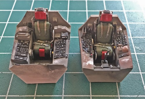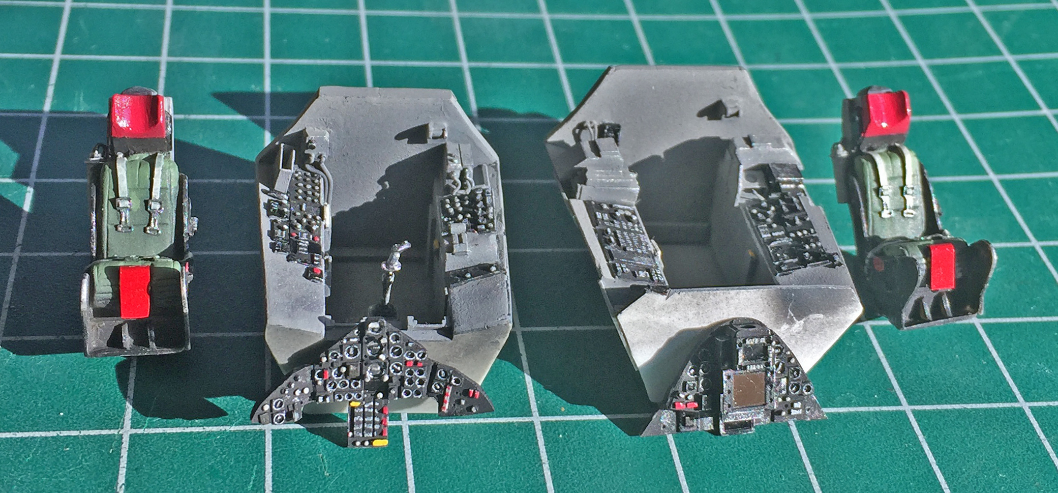 And with that, the cockpits are mostly done. There are a few minor details to add but those will come later. The cockpits will be held in place with white glue to seal the cockpits from the intrusion of paint: