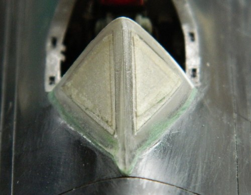 The windscreen was just slightly wider than the area it mounts to, due possibly to all the sanding I’ve already done on the fuselage. Regardless of why it’s larger, larger it is and putty was needed to make things fit: