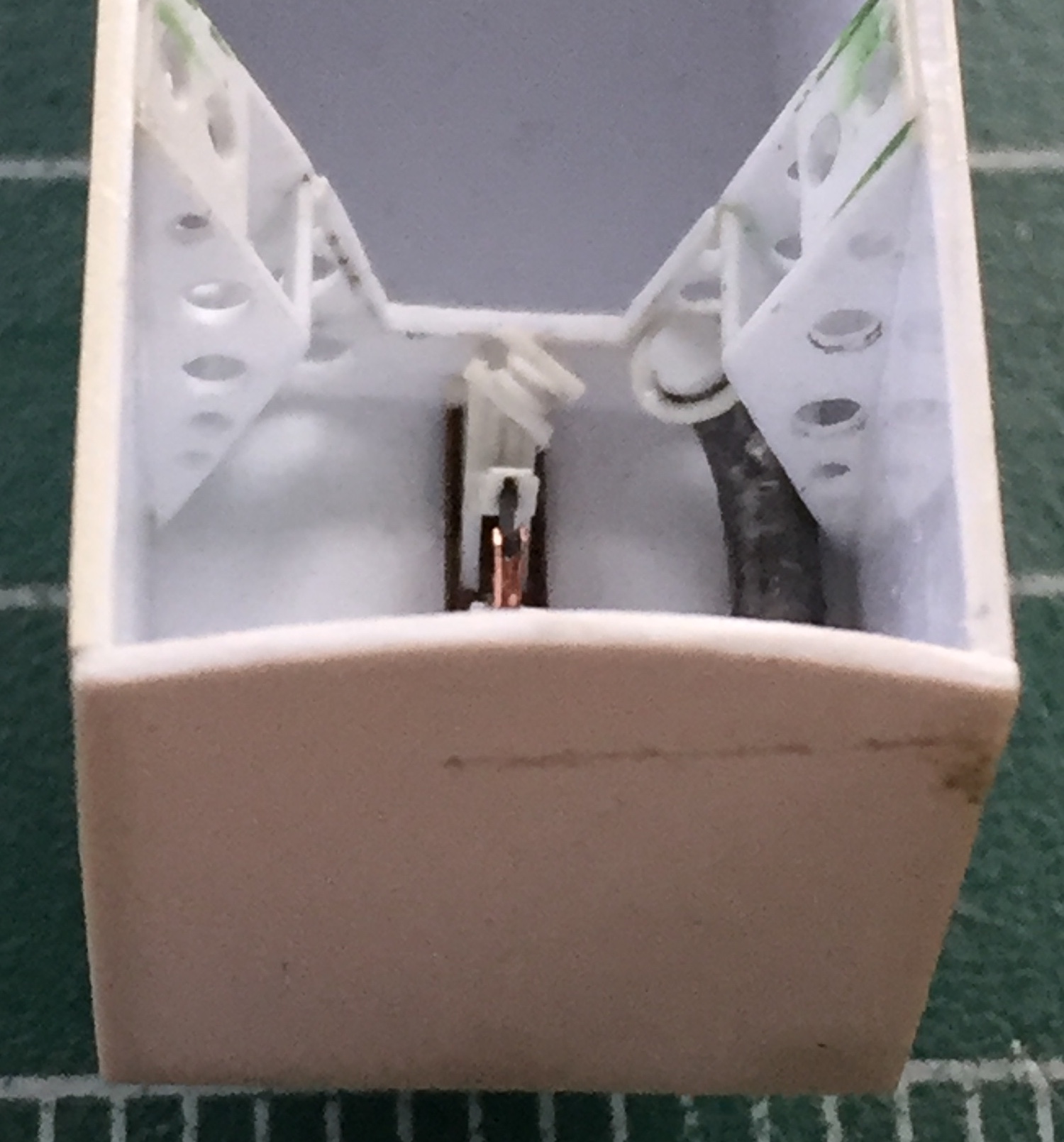 So before I either dropped it and broke it, or just broke it without the optional drop, I glued that assembly into the nose wheel box (the capped vent tube was .093″ solder [2.38mm] added earlier):