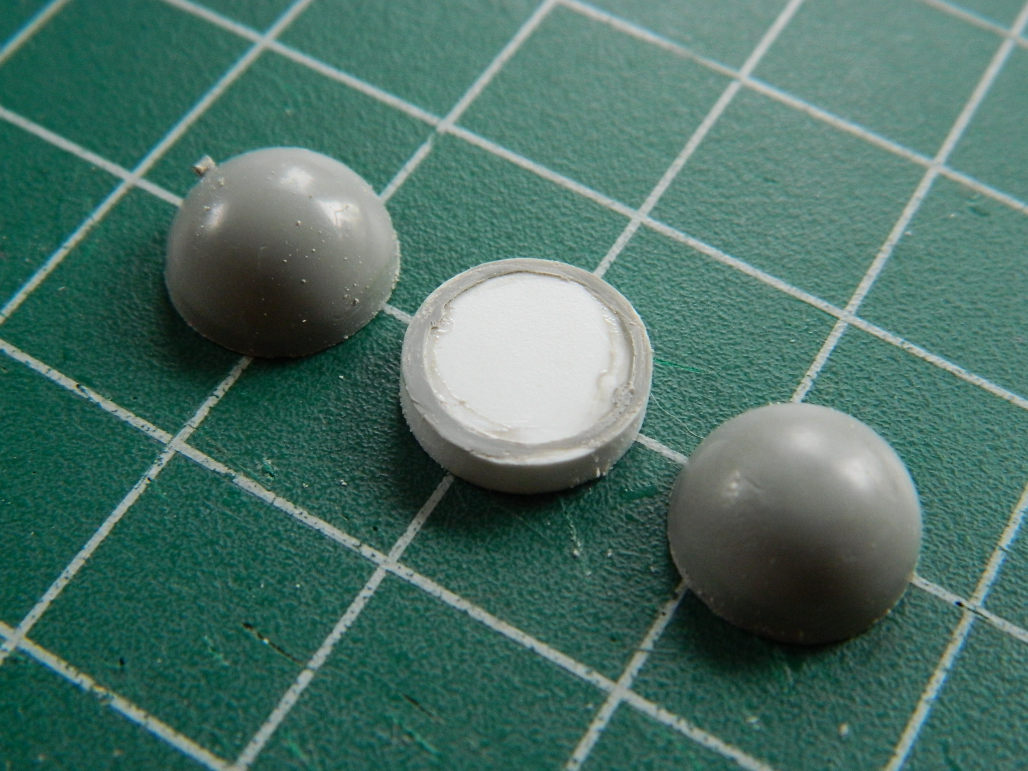 I sanded the exterior lip and filed the interior lip to get the thickness I wanted. On parts this small, where things need to be filled, I don’t use putty (there really isn’t enough of it to hold to itself or the plastic). I add small scraps of styrene and cut, file, sand, them to shape once the glue completely cures:
