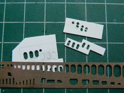 I added the various lines to the oblong tank using solder, copper wire, and stretched sprue. The discs were punched out with the punch and die set: