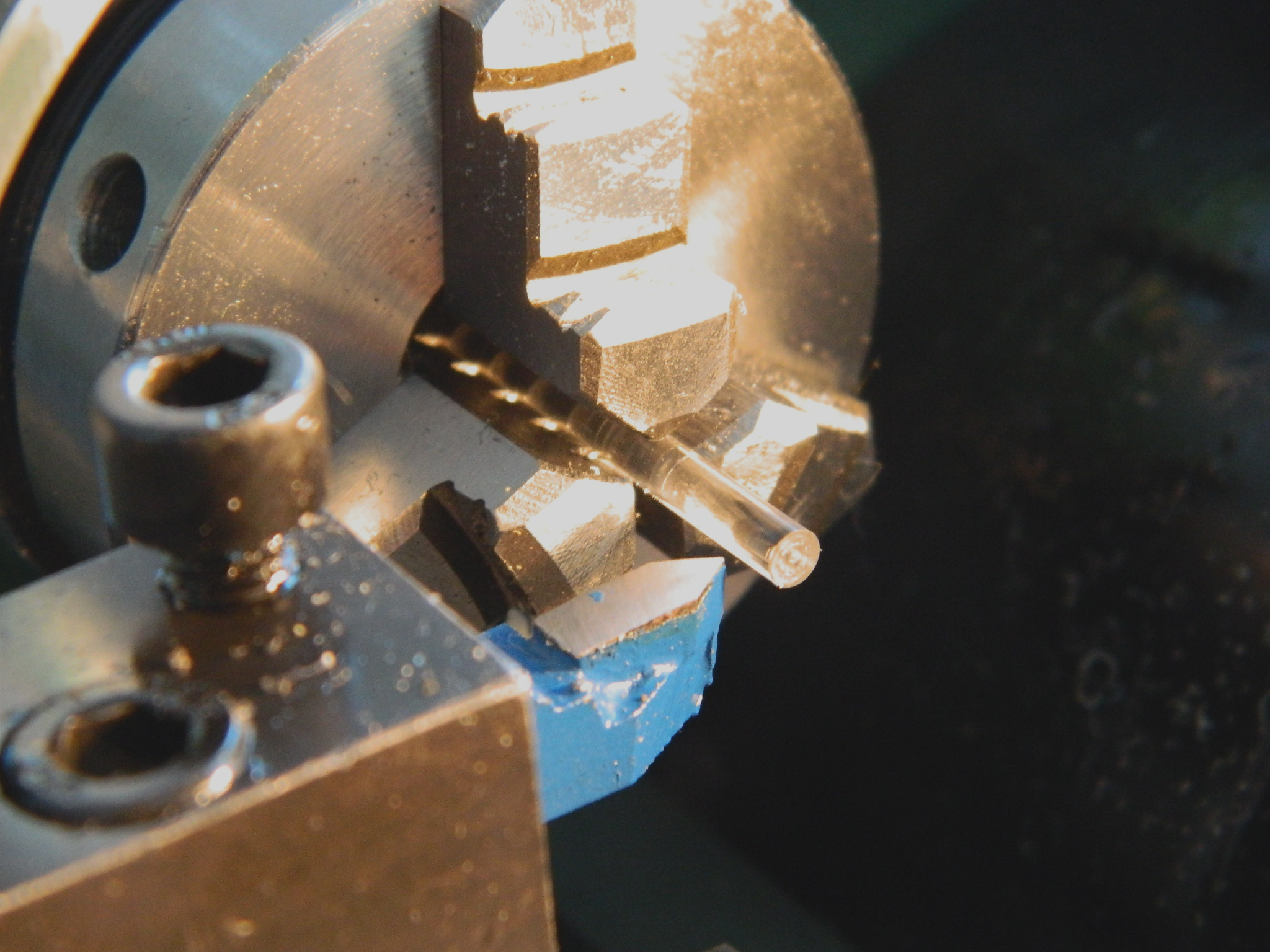 After getting comfortable with how the new lathe works, I turned the second landing light from a quarter-inch (6.35mm) clear acrylic rod: