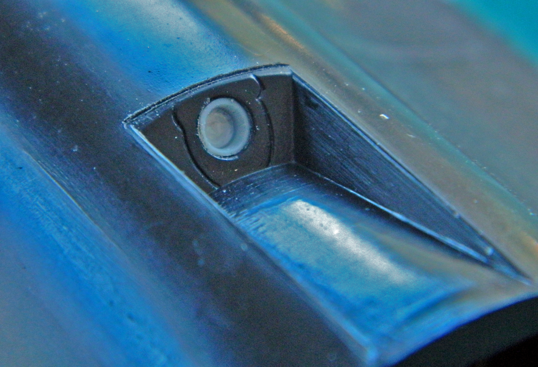 While waiting for the micro-lathe to arrive, and having no shortage of things to do, I attended to a couple of fuselage details that were annoying me. The PE details for various surface grates are very nice. Mistakenly, I took the two grates that most closely fit the molded on grates and installed them. The grates on the Blackbird are flush mounted (makes sense, considering drag slows an aircraft down and the Blackbird isn’t famous for going slow) which meant I had to align them, outline them, and then scrape away enough plastic to socket the grates flush: