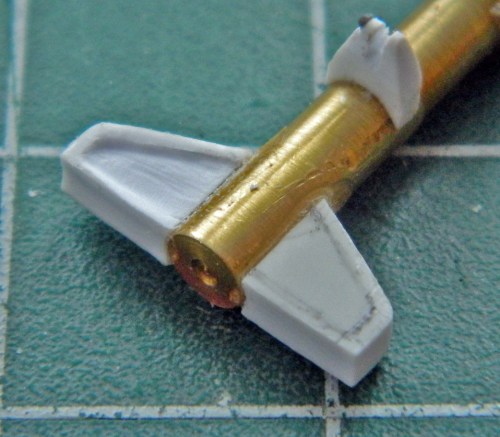 I added .040″ (1.016mm) strip around the upper and lower edges of the trunnion to complete the shape and filled out the surface with putty to replicate the casting: