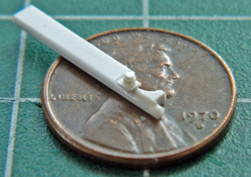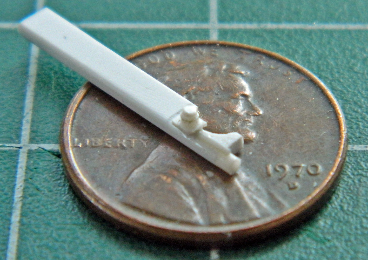 That good luck was not quickly evident. Soldering, which is what I would need to do to get the crossbar reattached, involves heat. It involves enough heat to melt styrene. There is more than one piece of styrene on this part, one of which is much too close to where heat needs to be applied for my comfort. But without the crossbar attached, this piece is useless. If I screw up and melt plastic with the soldering job by using too much heat, then I’ll redo the plastic parts. Since it’s 100% useless as is, even with slim odds of soldering the part back on without melting anything, “slim odds” are better than “100% useless.” My journey into jeopardy started by snapping/cutting the extension limiter off.