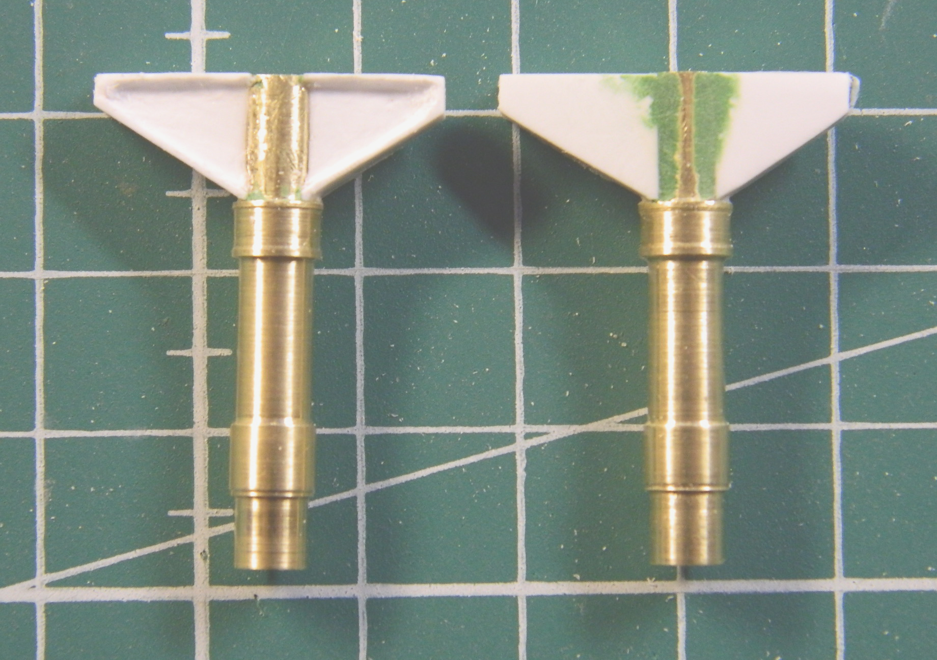 Some carving, some puttying, and I could add the pin. The size of this model called for the use of metal struts and I wanted to use a pin that was also strong. So I used a pin and then trimmed it: