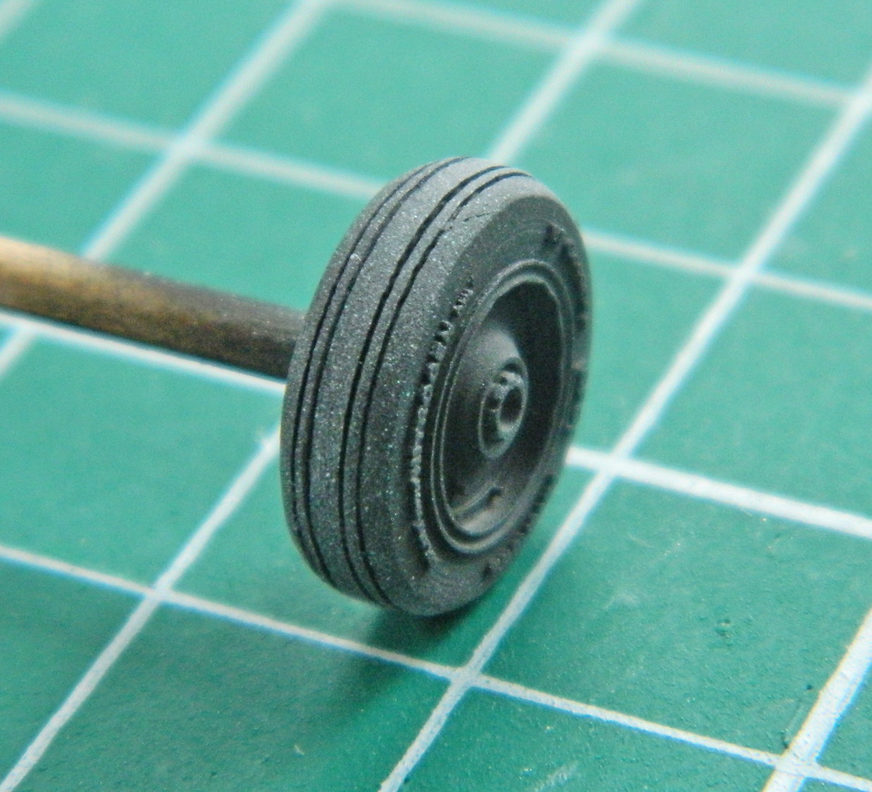 I encountered another problem with the nose wheels/tires. The profile of the tires is definitely rounded, not squared off. Files and sandpaper fixed that problem: