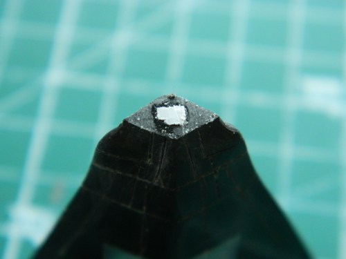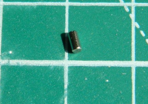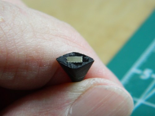 Next was to fill the socket where the (now removed) locating pin was to seat and then drill holes for the magnets to sit (kjmagnetics.com, part number ZD12, 1/16″ (1.28mm) x 1/8″ (3.18mm) rare earth magnets):