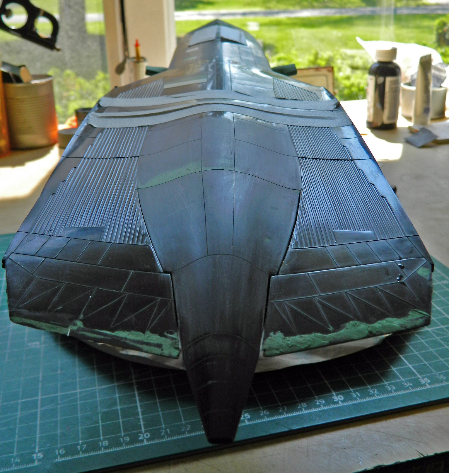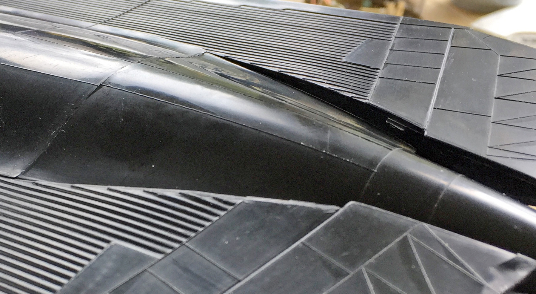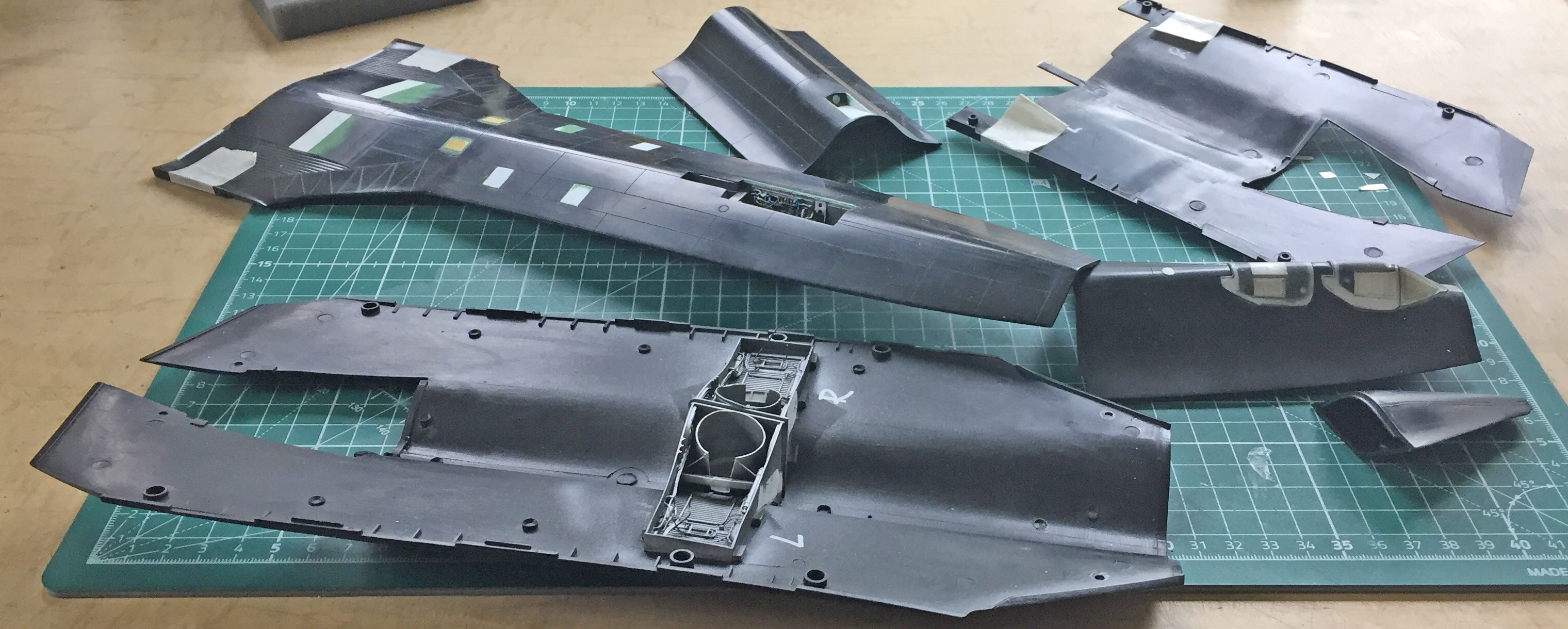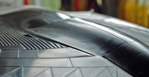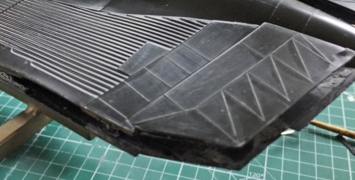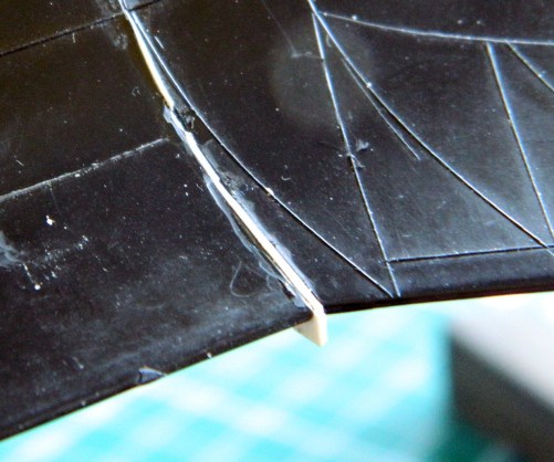 Once all the panels were added to the tops of the wing roots, I needed to blend one panel with putty: