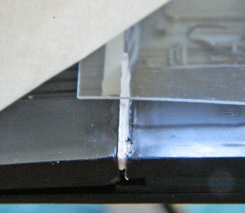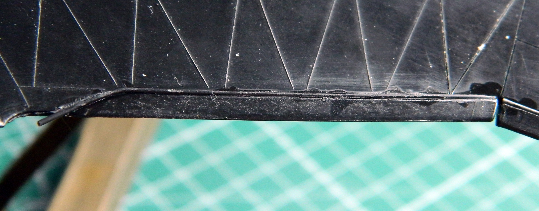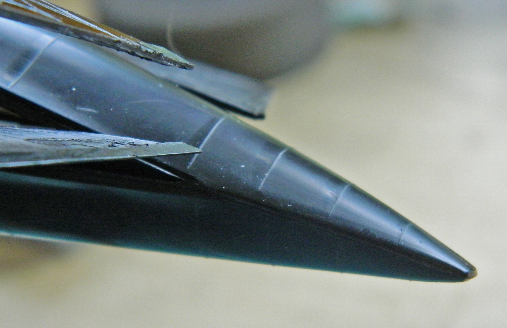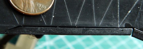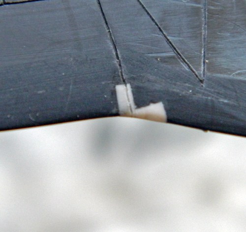 I also noticed the numerous places where “fit” would need work to FIT, in addition to numerous places where plastic needed to be added to fill gaps. Flat .010″ (.254mm) fitted into the gap found in underside of the nose: