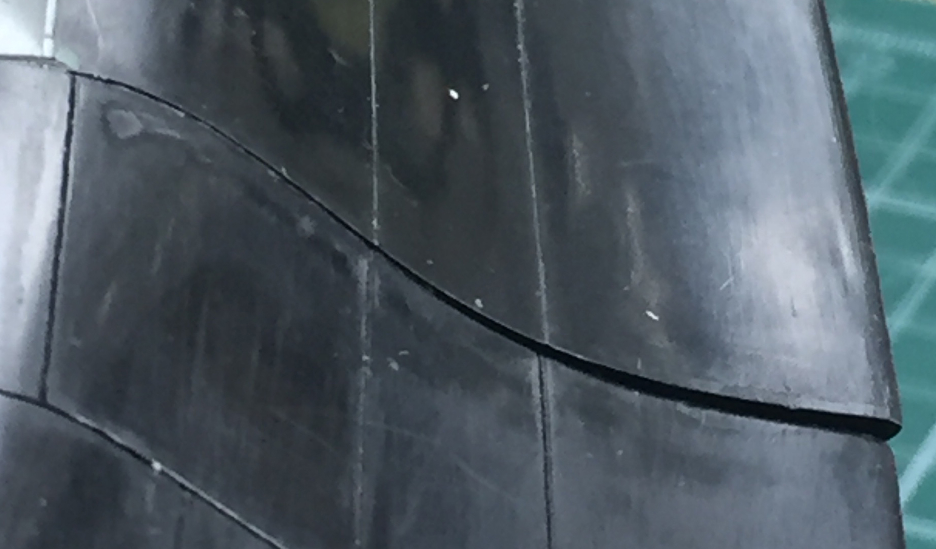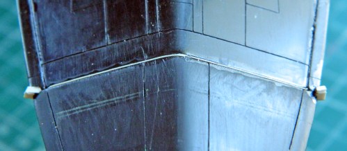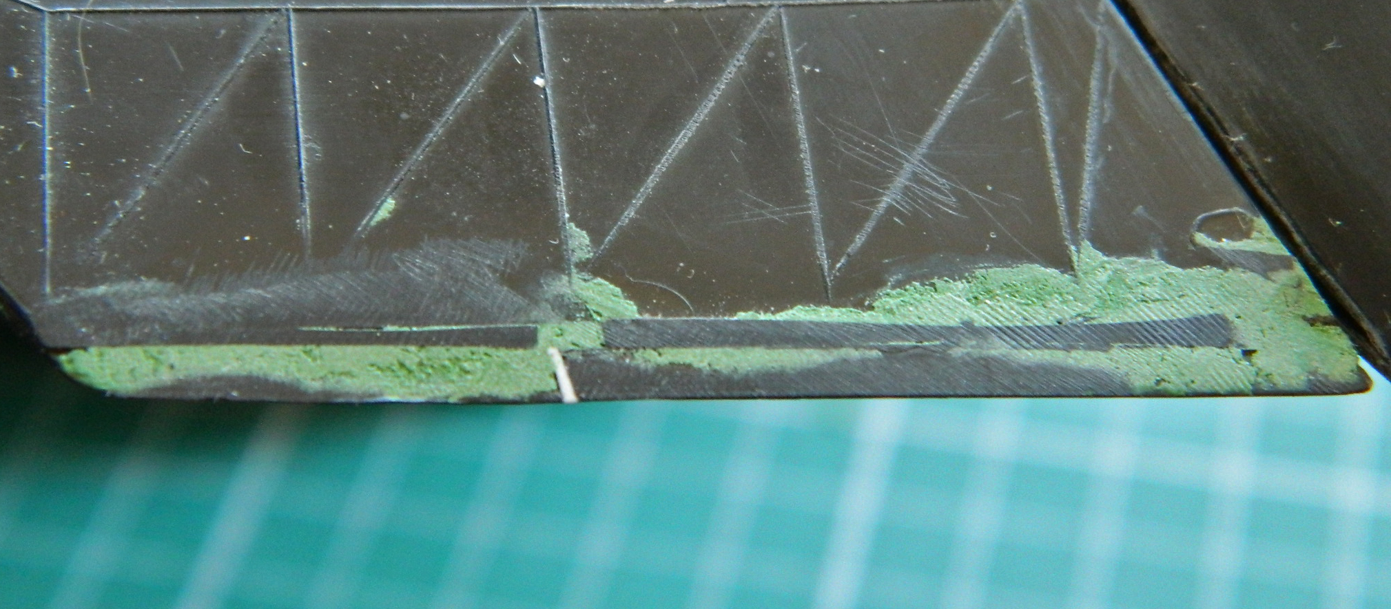 And since I had the putty out, I added it underneath to make the part I’d forced to fit blend without any ridge (and I did more panel scribing while I was under there):