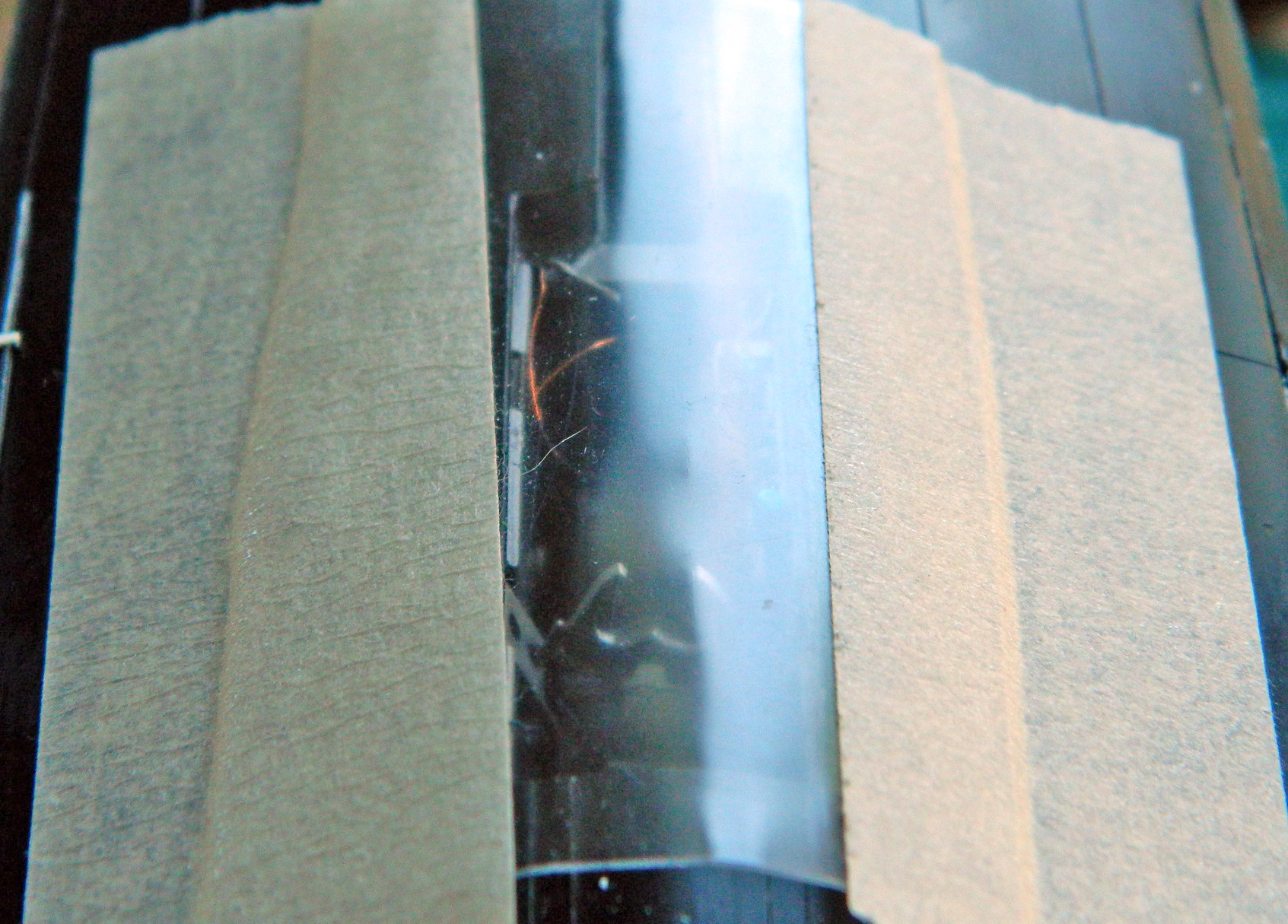 I added some scrap .080″ (2.032mm) stock to both sides of the box to increase the surface area the glue could act on:
