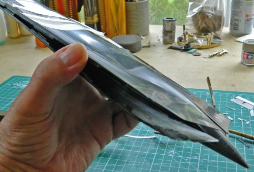 There was a lot of filing and sanding to smooth surfaces where plastic was added. Actually, there is a lot more filing and sanding to do yet, but much of what has been added has been smoothed: