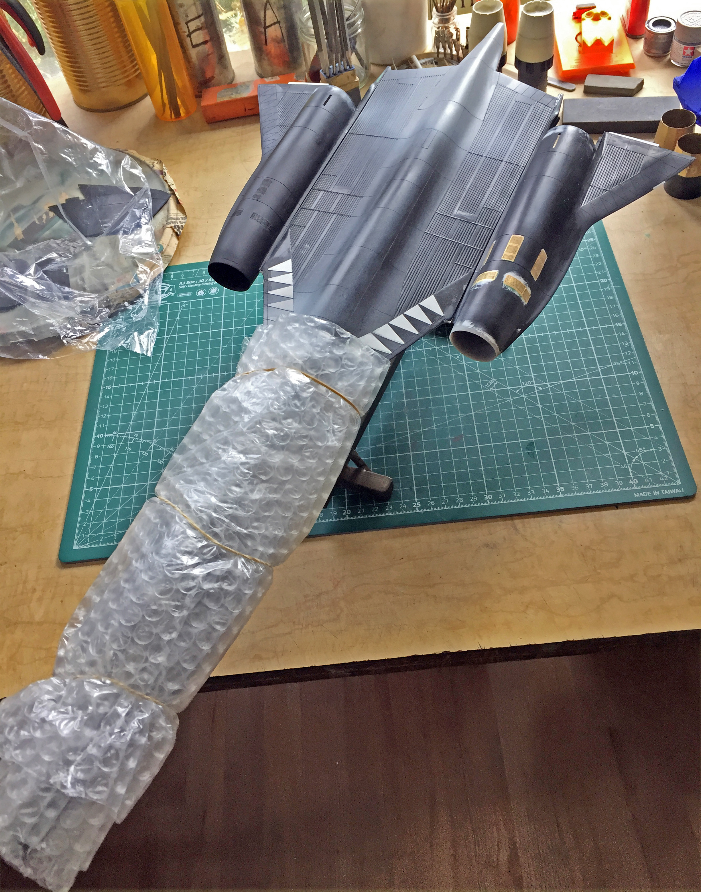 This time I manage to get ahead of my inattention and fixed the problem before it became a problem…wrap the forward fuselage in bubble wrap: