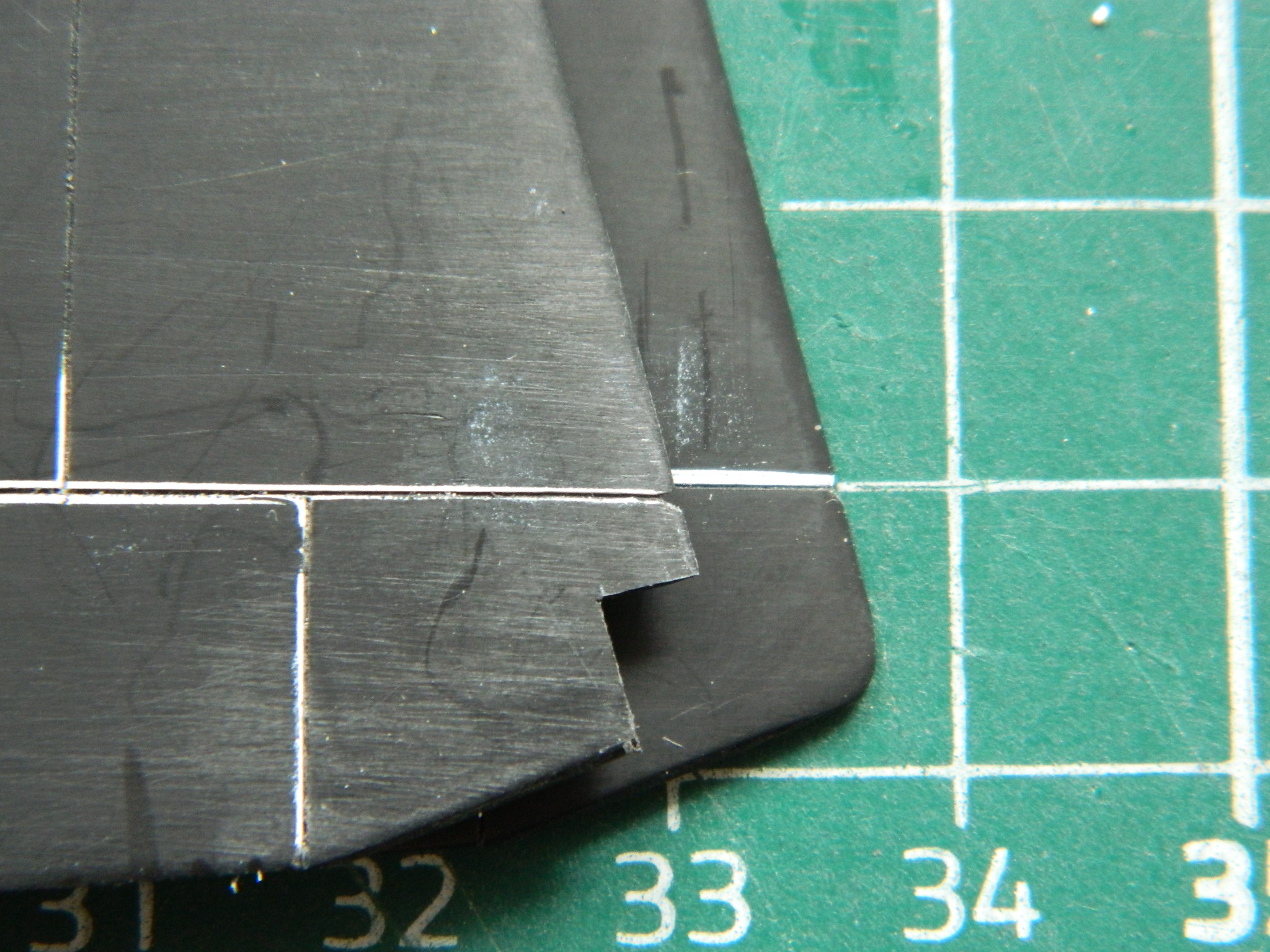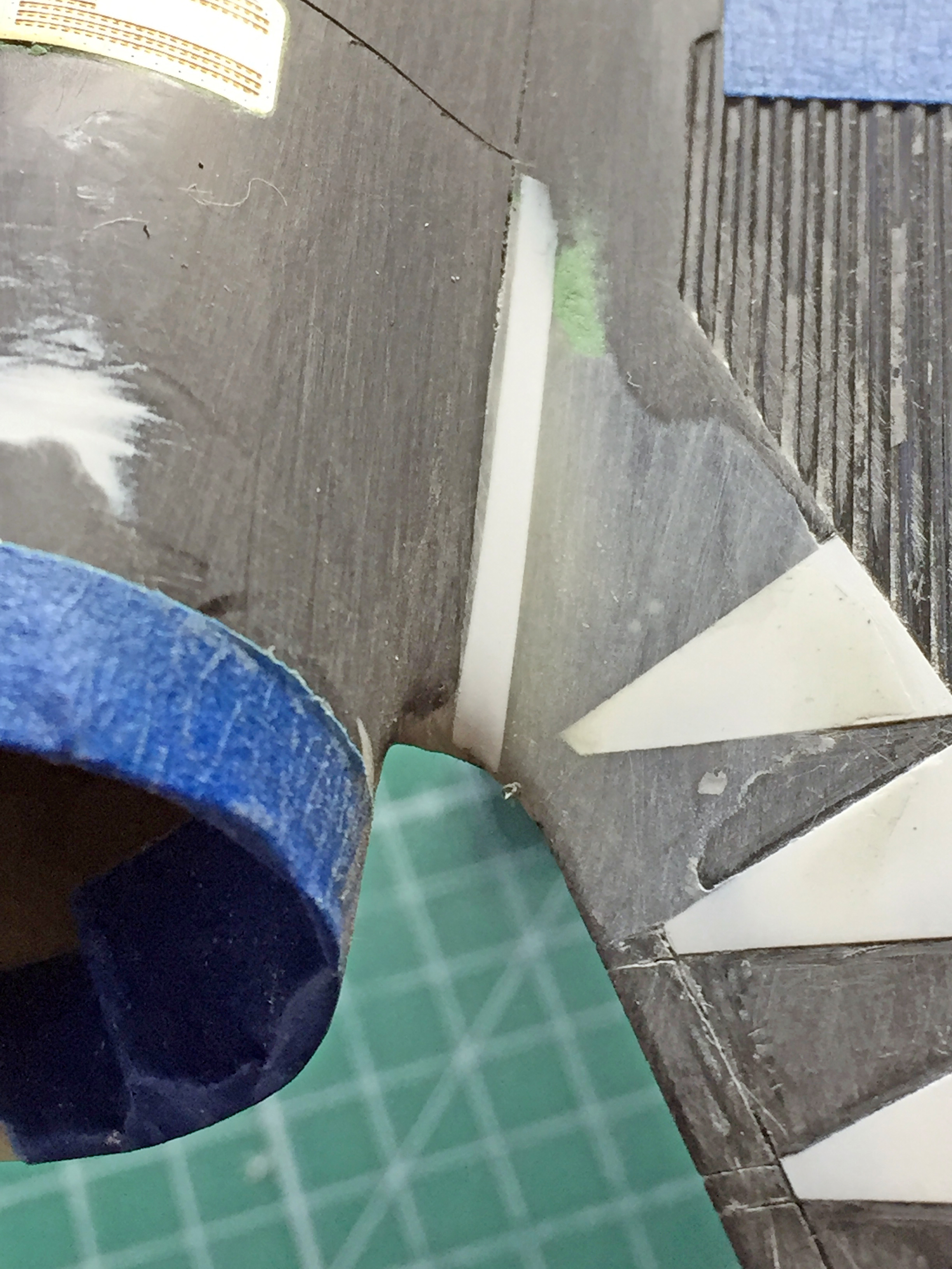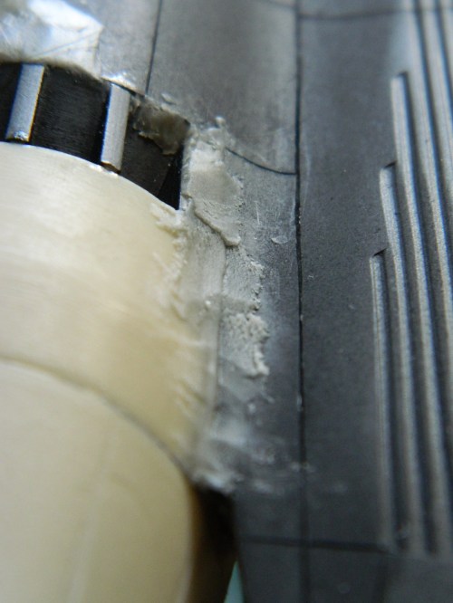 Filing brought down the excess plastic and sharpened the corners nicely and the acrylic putty filled in the small seams: