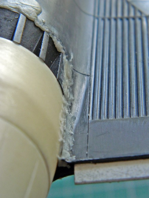 Again, the epoxy putty does double duty; it fills the gaps and adds more attachment points for the assemblies: