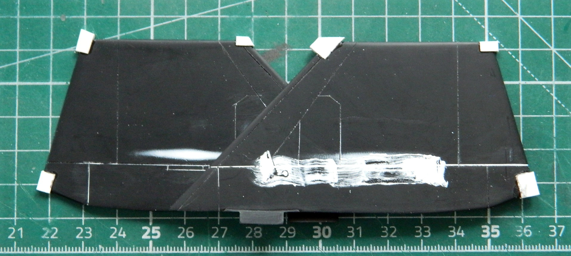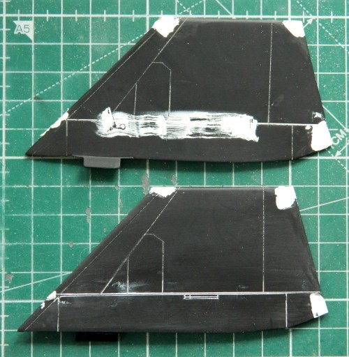 The vertical stabilizers/rudders were assembled, puttied, and scribed. Then they were dry-fitted to see how things are going (and they’re going…and they’re going just as everything else has been…fit problems):