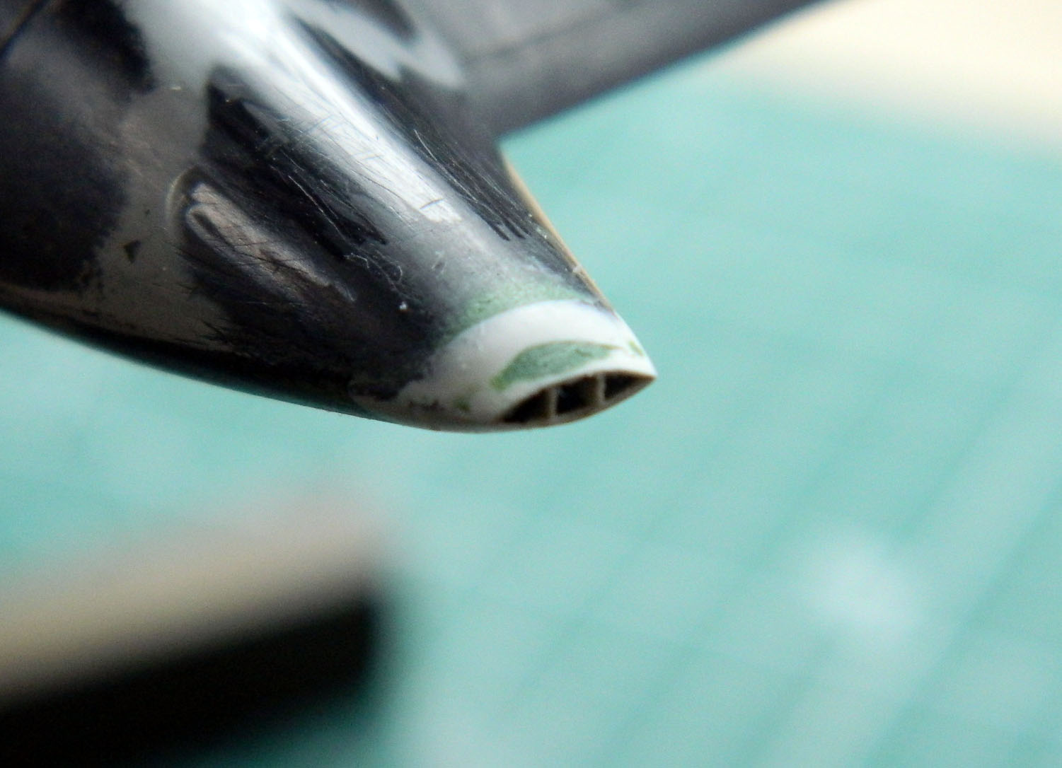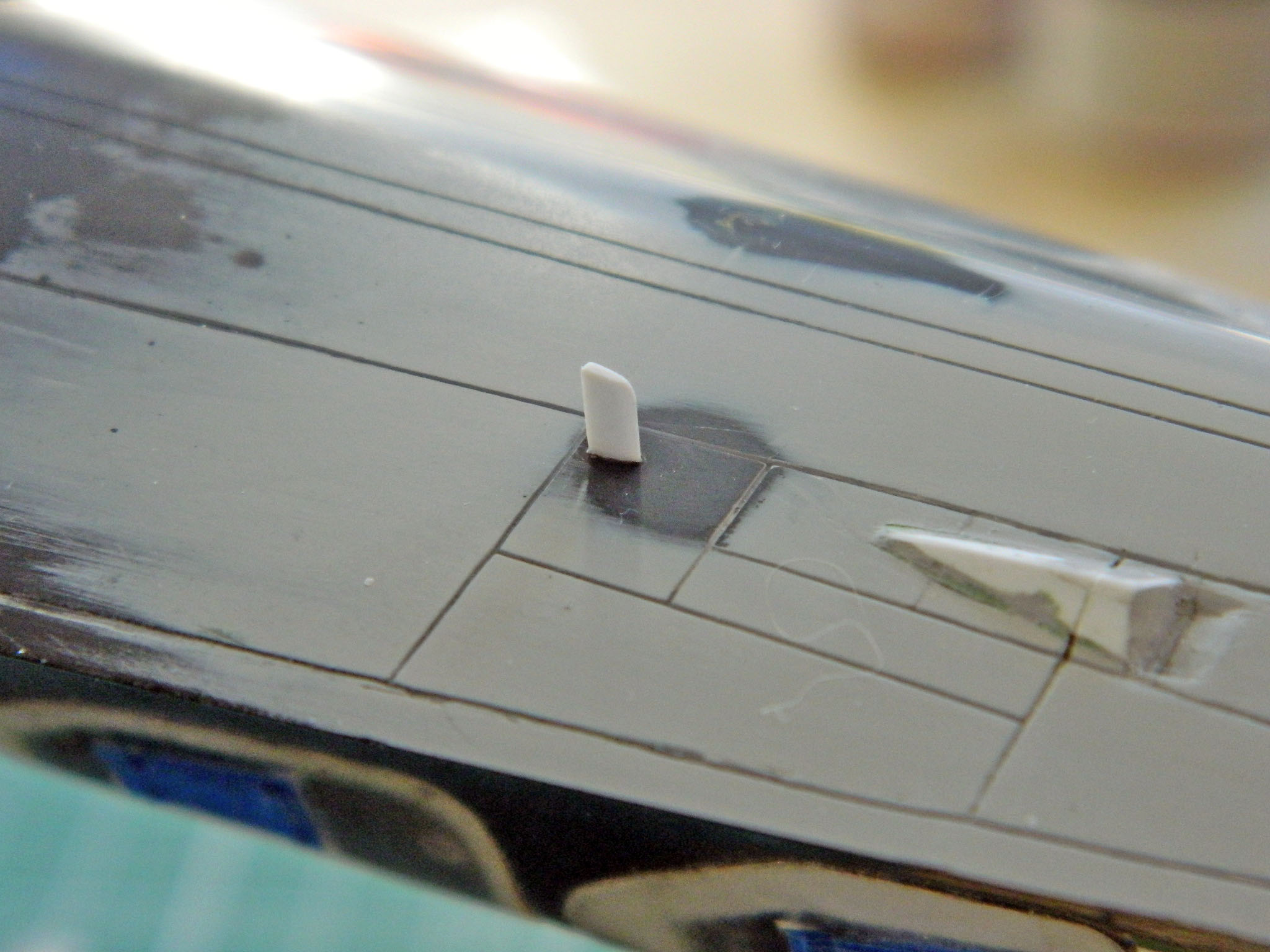 With the corners of the vertical stabilizers sharpened, it was time to add them: