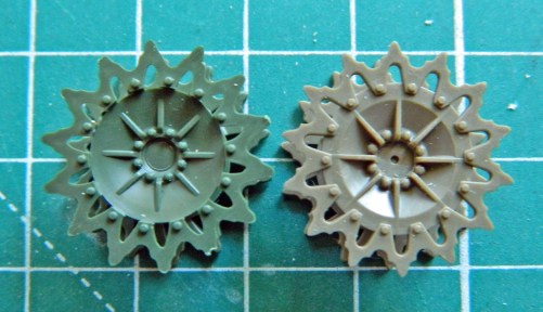 Well, THAT makes no sodding sense! And the AFV drive sprocket is more accurate than the one Academy provided (on the left):