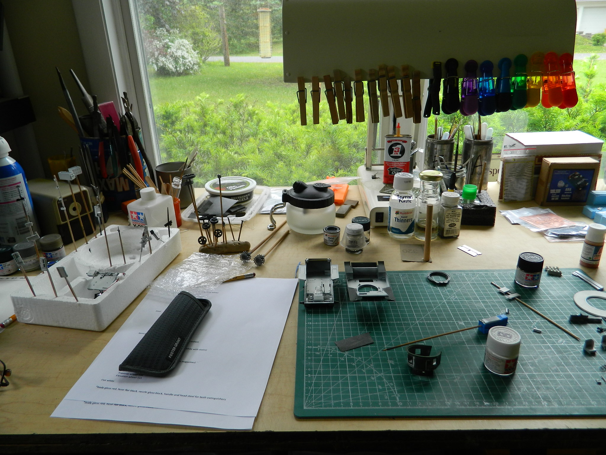 There are a LOT of small parts that need paint. Holding those with my sausage fingers has shown me that that doesn’t work well. I glued things (using superglue or PVA) to bamboo skewers so that I could get a grip on things (would that getting a grip were that easy in all things):