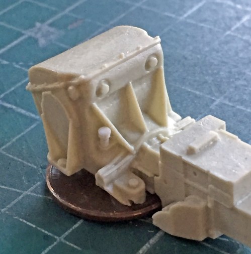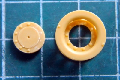 There are two parts in that photo and they’re only half the parts the drive sprocket is comprised of. The part on the left is the hub that fits behind the body of the sprocket. For it to fit into the body correctly, the bolt heads on the face of the hub have to be shaved off. The other two parts are separate sprocket plates. If you wanted to do a diorama of the crew changing sprocket plates, the kit parts are preconfigured to allow you to do that easily. It’s not much more work if you only want a sodding drive sprocket, but this sort of thing I’m starting to see throughout the kit. This adds to the parts count, obviously, but it also allows for some VERY FINE AND TINY PARTS as well.