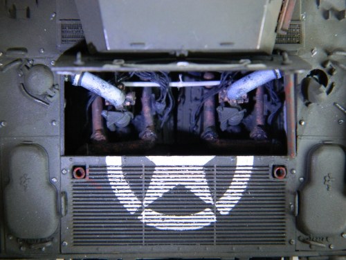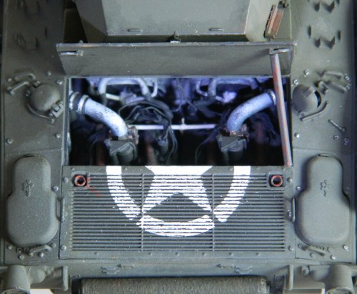 - M4A3 (Tamiya) Build #10 – Correcting Exterior Details, Painting the Engine, Adding Wear to Road Wheels and Painting Them