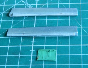 Getting ready to paint things is what is driving the build at this point. I needed to add fasteners that had been knocked off during handling and once that was accomplished, I protected the fragile resin decals with a coat of Tamiya XF-28 Medium Gray (15 parts) and Tamiya XF-2 Matte White (2 parts):