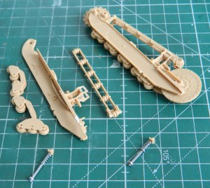 If I have a choice, I prefer to start with the most annoying and/or difficult tasks first while my enthusiasm for a given project is at its greatest. In this case, perusal of the instructions indicated that the suspension was going to be that job this time. LOTS of little wheels and other metal bits: