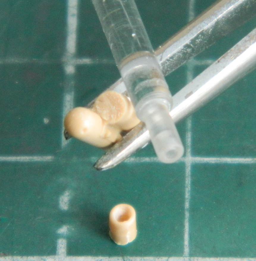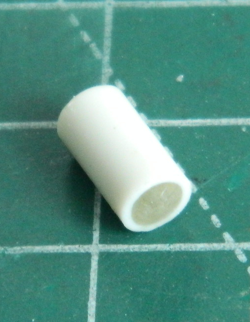 Almost a nice idea but the putty didn’t adhere to the inside of the styrene tube. The next attempt used clear acrylic rod in the lathe and that worked well enough:
