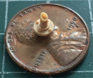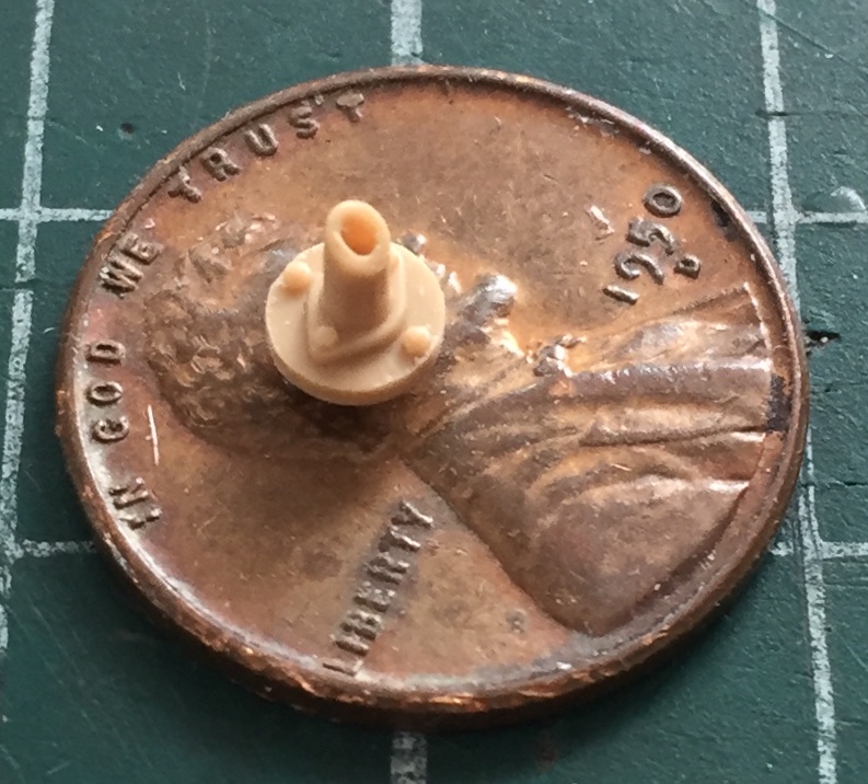 My first attempt to make the Mystery Part was to use 3/16″ (4.76mm) styrene tube, fill it with Apoxie Sculpt epoxy putty, and then I would turn the end down on the lathe once the putty cured (an overnight process):