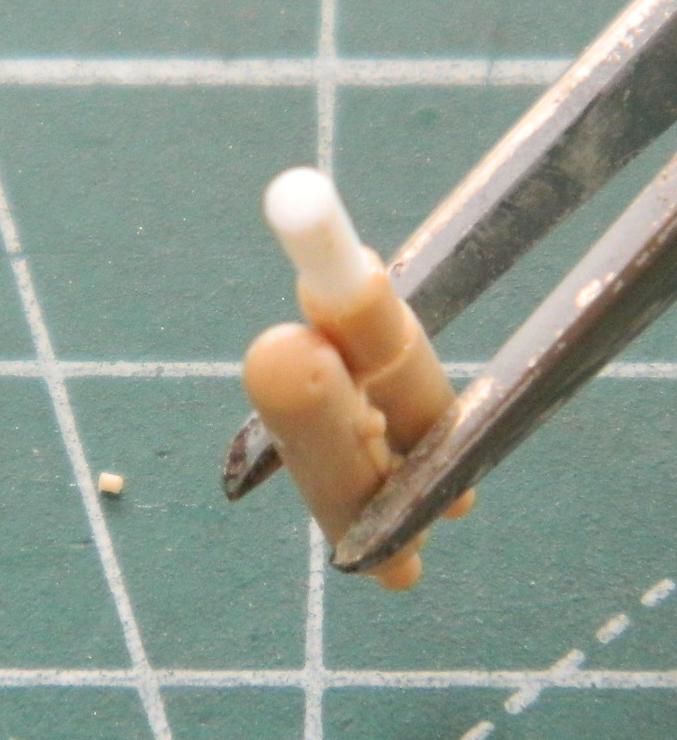 The starting crank was made from various scrap bits of styrene (because who throws anything out?!) and then drilled the depression for the Mystery Part using a 3/16″ (4.76mm) bit, then checked it all for fit and alignment: