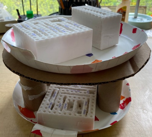 Four hours later the mold box is pried away from the base and then from the top down I start removing the blocks until I have this:
