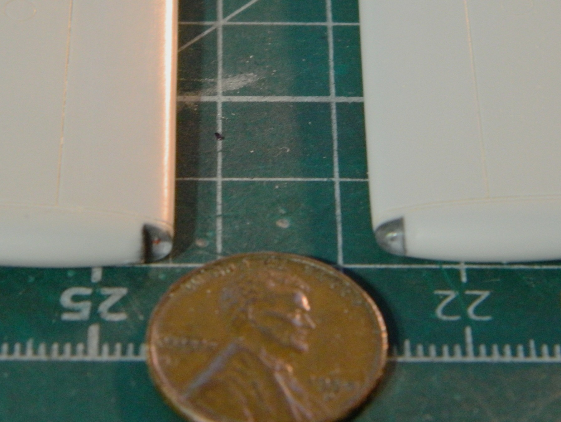 One on my peeves is using opaque paint to replicate things that are clear or translucent. I have two wingtip lights and two landing lights to do, and only the landing light located under the starboard wing was acceptable (relatively speaking because of…wait for it…fit problems). So three of the four landing lights needed to be redone using clear plastic or acrylic. I’ve already shown you how I dealt with the light located in the leading edge of that wing by using clear sprue. The wingtip lights are too large for any clear sprue I have on hand so I ended up using a quarter inch (.635mm) section of a clear acrylic rod.