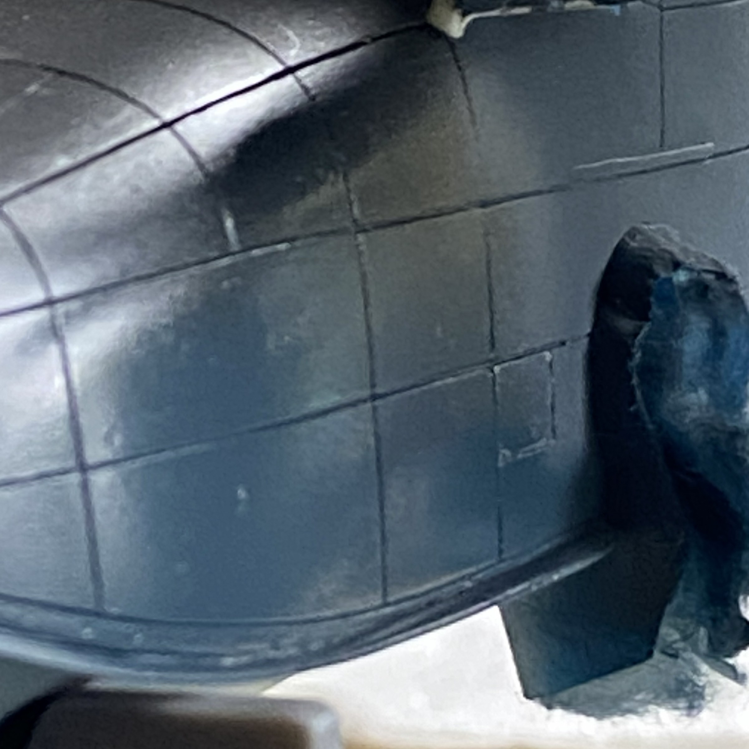 Though not precisely pleased, there was something else that fell short of pleasing. When I cut the access open to fix the pilot’s seat, I had to replace the part cut out once I’d fixed the seat. At this point of the build, I was reminded that if I’m not careful (giggle), when the cement finally out-gasses, there can be a visible shrinkage caused by A LOT of glue being used. I used A LOT of glue because there was A LOT of plastic used to fill the edges. This resulted in a clearly evident depression around the patch’s edge once the disco-blue was on. Since I was going to have to repaint the sides (once the correct color arrived), okay…so I’ll fill it in again, only this time I’ll use the UV-setting resin: