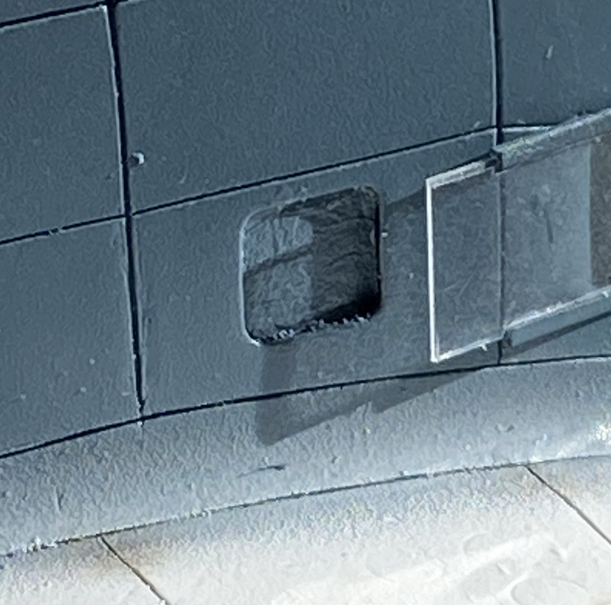 Speaking of self-inflicted wounds, I noticed a week or so ago that there was blue overspray on the nose. ::adds to touch up list::