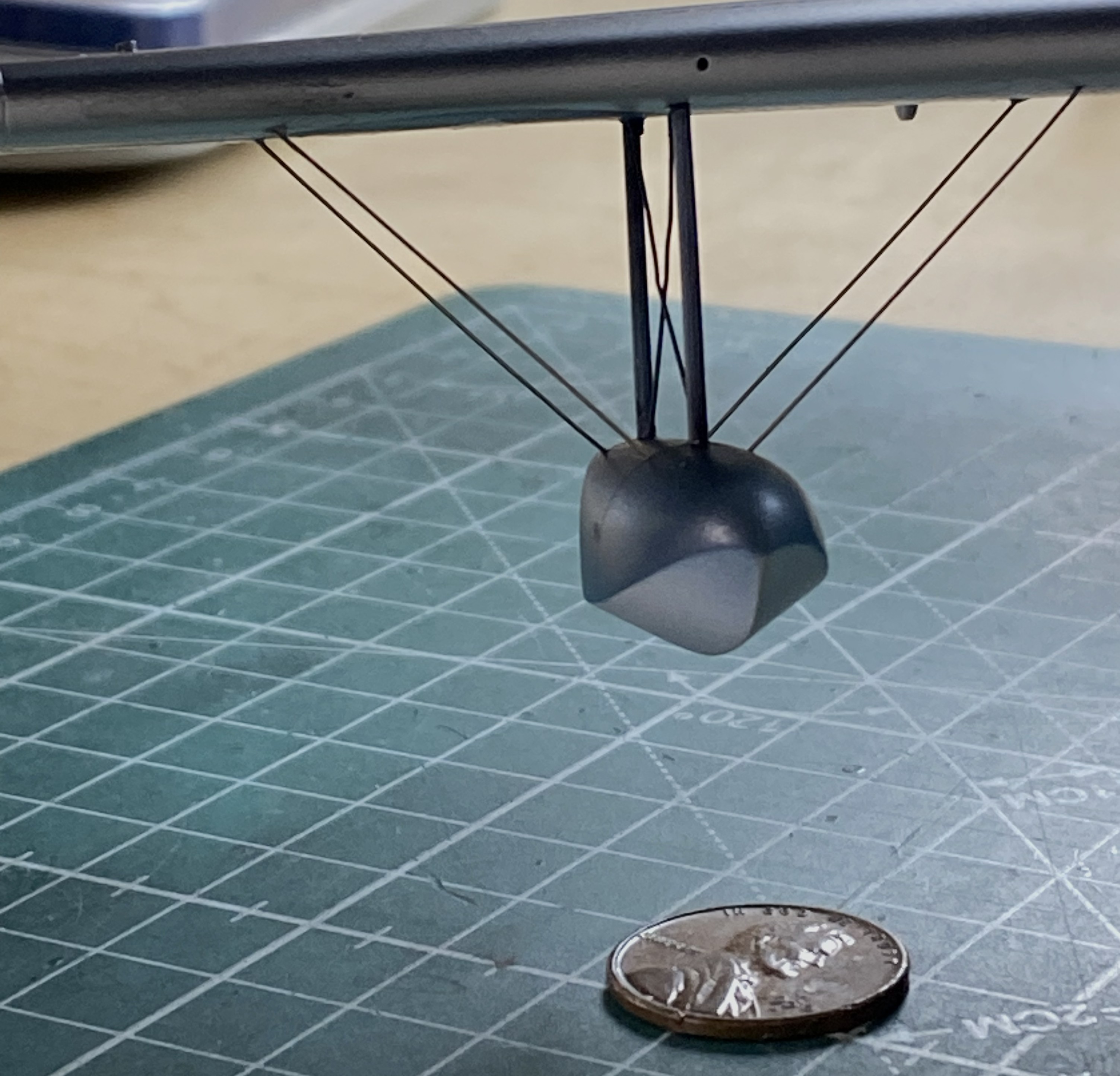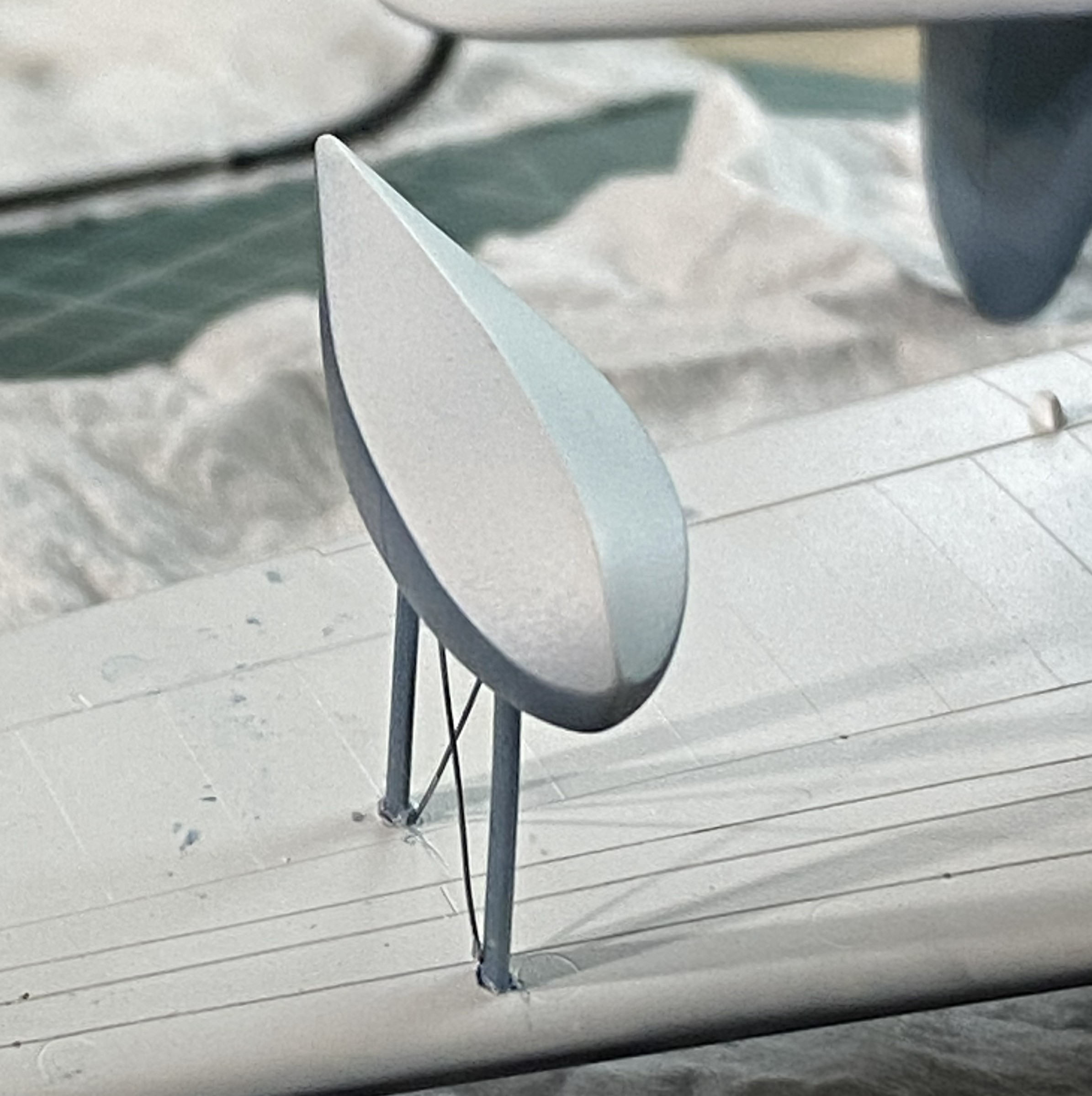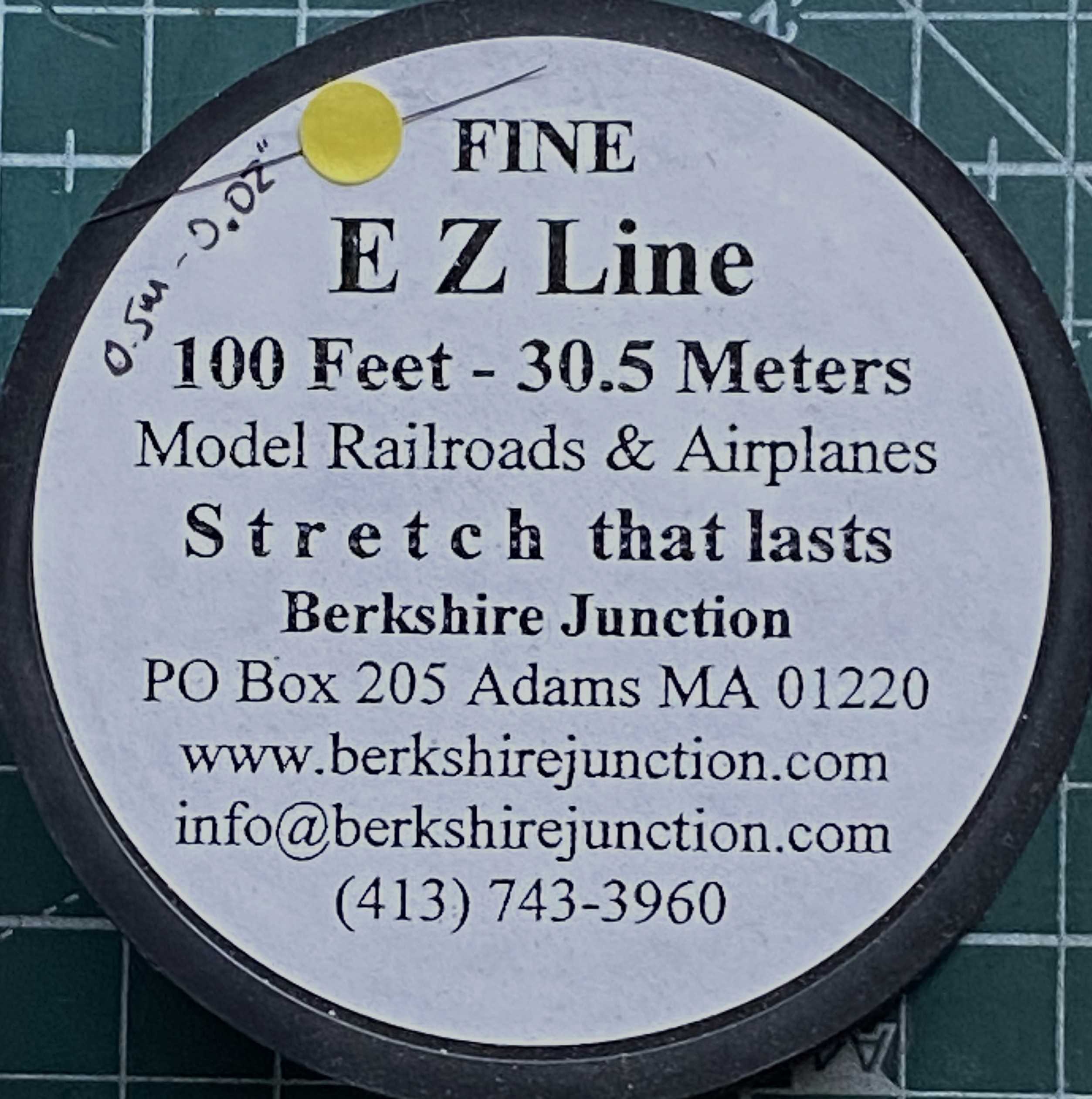 I’d attached little stubs of styrene rod where they belong and center-drilled them to socket the end of the EZ-Line into: