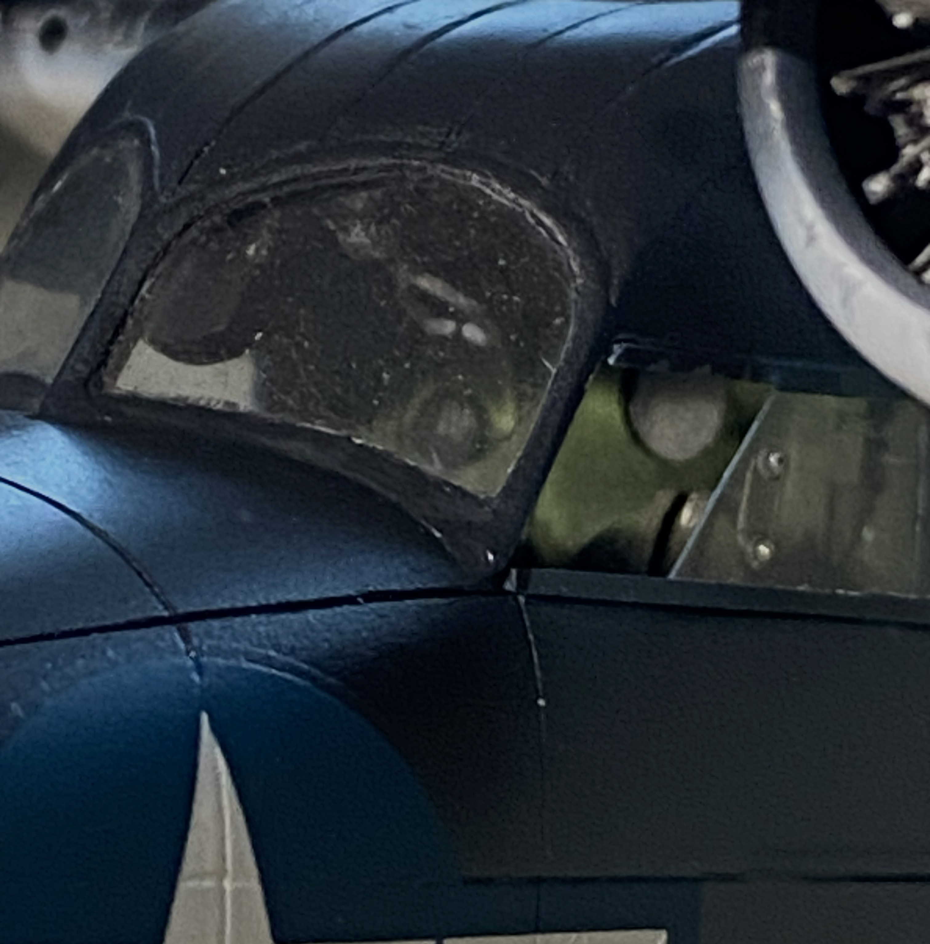 And speaking of paint touch ups, I painted the frames of the cockpit windows off so that I could also paint under them. A solution that created a problem; paints don’t match once assembled. Okay, I’ll be doing touch-ups (with a small brush in these areas…the other side, though not as bad, is the same), just add this to the list: